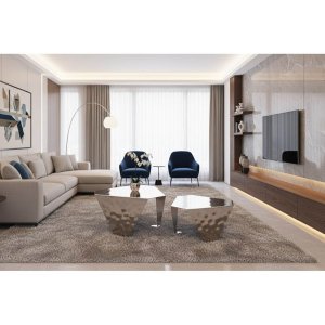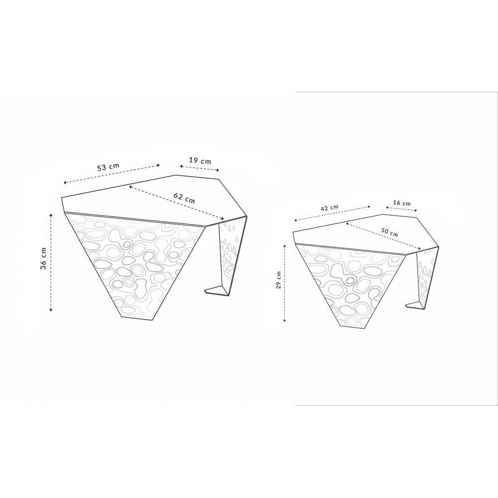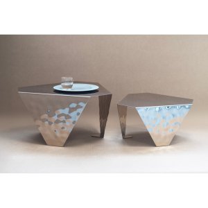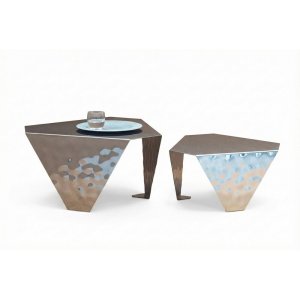 Il Set di 2 tavolini esagonali in acciaio lucidato effetto carapax – Miroir rappresenta la scelta ideale per chi desidera arricchire il proprio living con elementi di design contemporaneo e raffinato. Realizzati in pregiato acciaio inox argentato di alta qualitร , questi tavolini da salotto si distinguono per la superficie specchiata e la particolare lavorazione martellata che richiama la texture organica del carapace, creando giochi di luce e riflessi unici che donano luminositร e un tocco sofisticato allโambiente. Le forme esagonali e le linee geometriche decise li rendono versatili e perfetti sia come tavolini da caffรจ che come pratici piani dโappoggio accanto al divano o in un elegante ingresso. Le dimensioni studiate (62x53x36 cm il piรน grande, 50x42x29 cm il piรน piccolo) permettono di creare composizioni dinamiche e personalizzate, adattandosi a spazi moderni, minimalisti o di ispirazione industriale. La robustezza dellโacciaio inox garantisce resistenza, durata nel tempo e una manutenzione semplice, mentre la finitura argentata si integra armoniosamente in qualsiasi contesto dโarredo. Questo set esprime al meglio il suo valore in ambienti luminosi e ricercati, trasformando ogni momento di convivialitร o relax in unโesperienza di stile esclusivo e comfort.