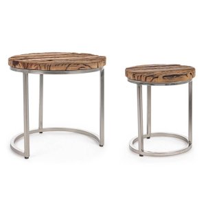I Tavolini Legno Marrone Industriale da Interno – ELLIOTT coniugano l’eleganza ruvida dello stile industriale con la calda autenticità del legno riciclato, donando carattere e raffinatezza a qualsiasi ambiente living. Il piano in legno massiccio, levigato ma lasciato volutamente imperfetto per esaltare le venature e le irregolarità naturali, valorizza il fascino dell’usura e conferisce unicità a ogni pezzo. La struttura in acciaio con finitura nickel completa l’estetica con un tocco moderno e robusto, garantendo al contempo stabilità e durevolezza. La combinazione armoniosa tra materiali grezzi e linee essenziali rende questo set perfettamente adatto per salotti dallo stile industriale, contemporaneo o urban, come complemento funzionale ma fortemente decorativo. I Tavolini da Salotto ELLIOTT si distinguono per il design asimmetrico e impilabile, adatto a ottimizzare gli spazi pur mantenendo un impatto estetico di grande effetto. Ideali per chi cerca un elemento d’arredo pratico ma di personalità, questi tavolini esprimono il meglio del loro valore in ambienti interni accoglienti e sofisticati, dove ogni dettaglio racconta una storia di materiali vivi e design ispirato.