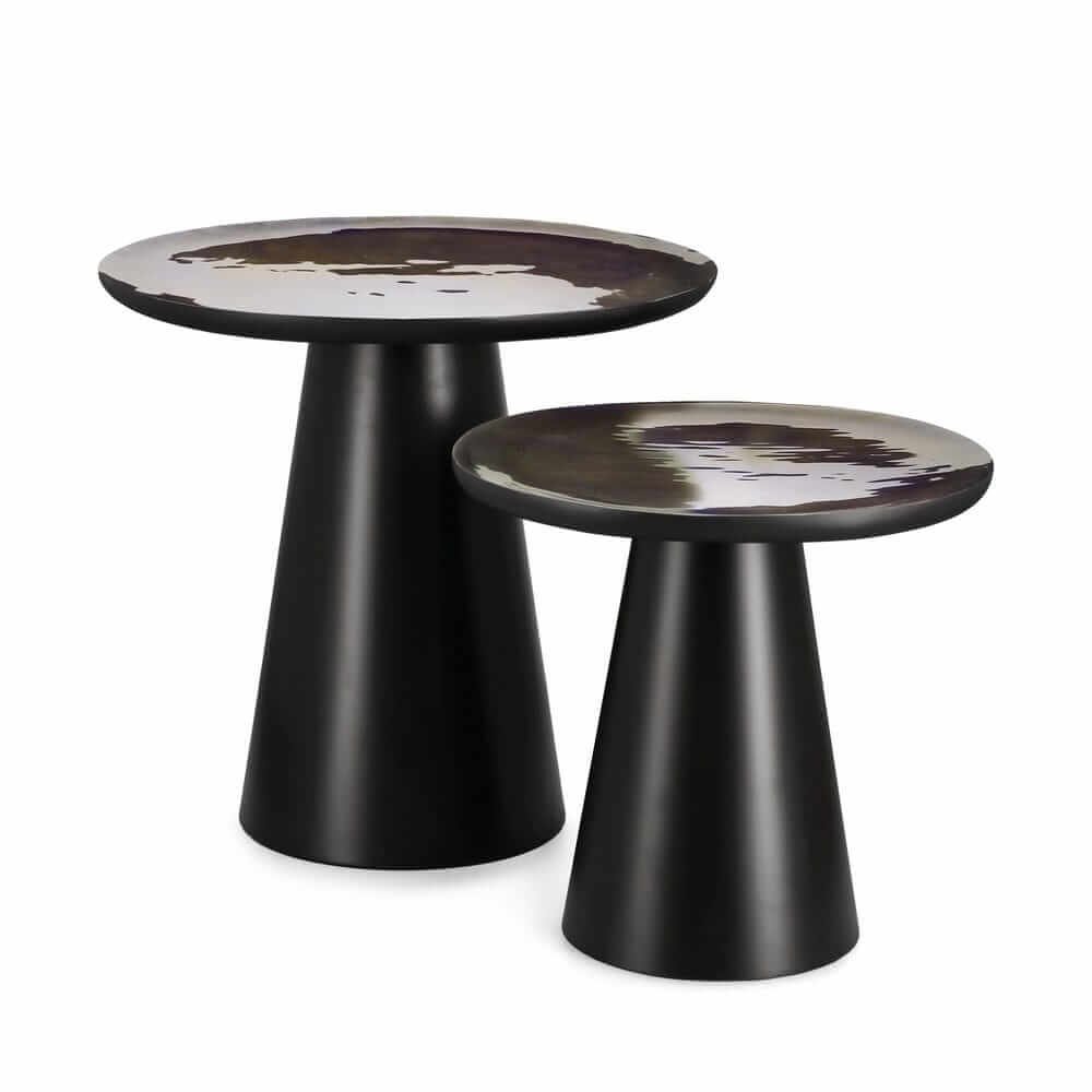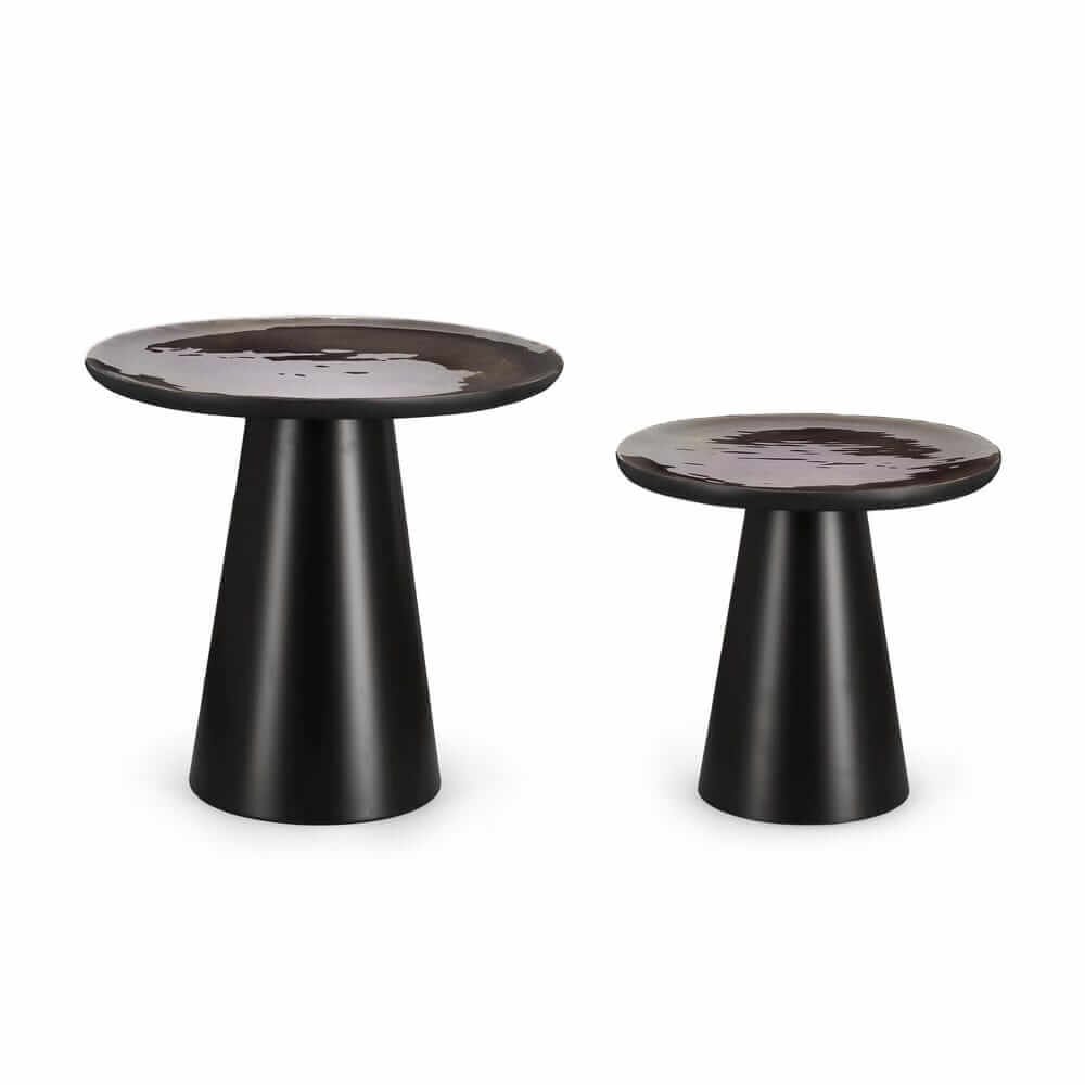 I Tavolini Legno Nero Moderni da Interno – HYBRID rappresentano l’unione perfetta tra design contemporaneo ed eccellenza artigianale. Caratterizzati da uno stile minimalista e sofisticato, questi tavolini da salotto si distinguono per l’elegante contrasto tra il piano in legno di mango con finitura smaltata e la base conica in acciaio verniciato a polvere epossidica, offrendo una presenza scenica moderna e ricercata. Il nero profondo dei materiali enfatizza le linee essenziali e dona una sensazione di equilibrio visivo e solidità, ideale per ambienti living dal gusto moderno o industriale. Il set, composto da due tavolini di altezze differenti, si adatta con naturalezza sia come complemento decorativo che come soluzione funzionale accanto a divani o poltrone. La superficie leggermente irregolare riflette la luce in modo delicato, aggiungendo texture e profondità all’arredo. L’elemento distintivo della linea HYBRID è quella capacità di fondere materiali naturali e finiture high-tech in una visione armonica della casa contemporanea. Perfetti per chi cerca un tocco di design in salotto, questi tavolini valorizzano al meglio spazi eleganti, accoglienti e di stile.