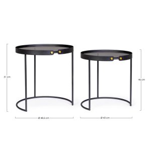 I Tavolini Vetro Nero Moderni da Interno – DAMON rappresentano un connubio perfetto tra eleganza essenziale e design contemporaneo, ideali per arricchire con stile ogni zona living. Caratterizzati da un’estetica minimalista e raffinata, questi tavolini da salotto presentano una struttura in acciaio verniciata a polvere epossidica, che assicura solidità e resistenza nel tempo, mentre il piano in vetro temperato nero aggiunge un tocco sofisticato e leggero all’insieme. Il profilo rotondo, le linee slanciate e i dettagli metallici dorati, visibili nella giunzione delle fasce laterali, offrono un contrasto elegante e moderno, rendendo ogni elemento distintivo e decorativo. Perfetti da collocare accanto a un divano, al centro di un salotto moderno o come complemento in ambienti in stile industriale o contemporaneo, i tavolini DAMON sono funzionali ma anche altamente decorativi. La trasparenza del vetro e la struttura aperta conferiscono ariosità agli spazi, trasformando anche gli ambienti più ridotti in contesti accoglienti e curati. Questi tavolini si esprimono al meglio in contesti di design ricercato, dove ogni dettaglio contribuisce a creare un’atmosfera di stile e raffinatezza.