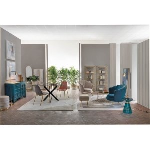 I Tavolini Vetro Oro Moderni da Interno – KENNETH rappresentano un’elegante fusione tra design contemporaneo e raffinatezza decorativa, perfetti per valorizzare qualsiasi salotto moderno o ambiente giorno sofisticato. La struttura in acciaio verniciato a polvere epossidica, dal prezioso colore oro, crea una base solida ma visivamente leggera grazie all’intreccio di linee geometriche morbide e dinamiche, che donano movimento e originalità all’intero complemento. Il piano in vetro trasparente esalta la luminosità e contribuisce a creare un gioco raffinato di riflessi, amplificando la sensazione di spazio e luce all’interno della stanza. La combinazione di materiali di alta qualità unita a un design curato nei dettagli rende i tavolini KENNETH ideali per ambienti chic, glamour o contemporanei, dove ogni elemento concorre a creare un’atmosfera curata e accogliente. Questo set, composto da due tavolini da salotto di dimensioni diverse, è perfetto per offrire versatilità e funzionalità, mantenendo sempre un impatto estetico forte. L’esperienza d’uso si completa nel piacere quotidiano di un arredo che non passa inosservato, perfetto per ricevere ospiti o rilassarsi in un soggiorno dal gusto ricercato.