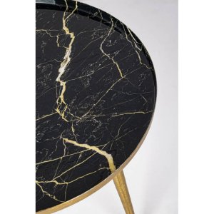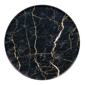 Il Tavolino Acciaio Multicolore Moderno da Interno Ø40 cm – KALEB è un raffinato complemento d’arredo dal design contemporaneo e deciso, perfetto per arricchire ambienti living, salotti moderni o angoli lettura sofisticati. La sua struttura snella e slanciata è composta da gambe in alluminio dorato, leggere e resistenti, che conferiscono eleganza e stabilità. Il piano rotondo in acciaio smaltato, caratterizzato da una intensa finitura marmorizzata nera con delicate venature dorate, cattura lo sguardo con un effetto lucido che riflette la luce in modo armonioso. L’equilibrio tra il nero lucido e l’oro satinato lo rende un tavolino da salotto dallo stile moderno con un tocco glam, ideale per abbinamenti con arredi contemporanei, metallici o dai richiami art déco. La superficie è facile da pulire e versatile nell’uso, perfetta per ospitare oggetti decorativi, libri o un drink. Grazie alla qualità dei materiali e ai dettagli di pregio, il tavolino KALEB valorizza ogni spazio con una presenza scenica e funzionale, offrendo un’esperienza d’arredo che unisce estetica e praticità in modo impeccabile.
