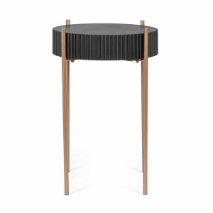 Il Tavolino Acciaio Nero Moderno da Interno H64.5 cm – FREYA rappresenta l’equilibrio perfetto tra design contemporaneo ed eleganza minimale, ideale per valorizzare qualsiasi ambiente living moderno o zona giorno dal gusto raffinato. Il piano rotondo in MDF verniciato nero si distingue per la sua particolare finitura rigata, che dona profondità e carattere senza appesantire la composizione. Le gambe sottili in acciaio verniciato a polvere epossidica, dal sofisticato tono bronzo opaco, creano un contrasto armonioso con la superficie scura, esaltando lo stile essenziale ma ricercato dell’arredo. L’aspetto slanciato e la struttura leggera lo rendono perfetto come tavolino da salotto accanto a un divano, o come elegante elemento d’appoggio in un angolo lettura o in ingresso. Grazie alla combinazione di materiali resistenti e finiture curate nei minimi dettagli, FREYA unisce estetica moderna e funzionalità, diventando un complemento d’arredo versatile e d’impatto. La sua presenza discreta ma sofisticata arricchisce l’ambiente con un tocco di design, offrendo un’esperienza d’uso che coniuga praticità e stile senza compromessi.