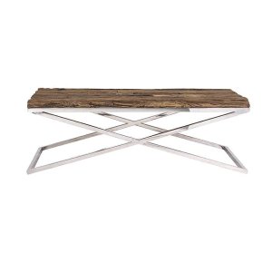 Il tavolino basso 130×70 – XANTHOS rappresenta l’equilibrio perfetto tra design moderno e matericità naturale, ideale per valorizzare con personalità ambienti living contemporanei o spazi esclusivi come lounge e hall di hotel. La struttura in acciaio argentato, con linee geometriche incrociate che evocano leggerezza e dinamismo, sostiene un robusto piano in legno marrone dall’aspetto grezzo e autentico, segnato da venature irregolari che donano carattere e unicità a ogni pezzo. Le dimensioni generose (cm 70 x 130 x 45 h) lo rendono pratico e funzionale come tavolino da salotto fisso, perfetto per ospitare riviste, oggetti di design o momenti di convivialità informale. La combinazione di materiali nobili come l’acciaio e il legno, insieme al contrasto tra la lucentezza metallica e il calore naturale della superficie, conferisce al modello XANTHOS una forte presenza scenica, capace di trasformare ogni spazio in un ambiente sofisticato ed accogliente. Questo tavolino si esprime al meglio in contesti dedicati al relax o all’ospitalità di lusso, dove può diventare un vero punto focale di stile.