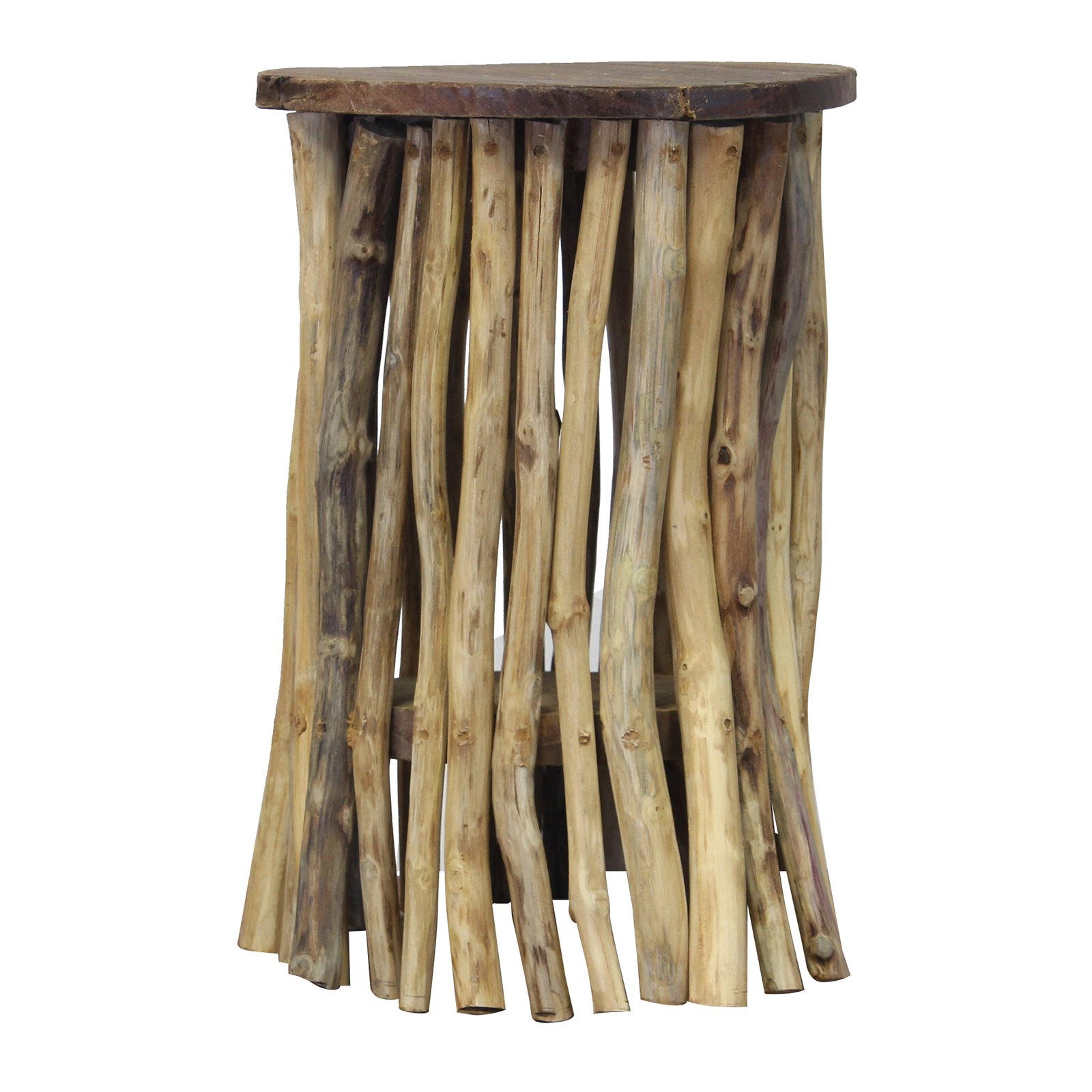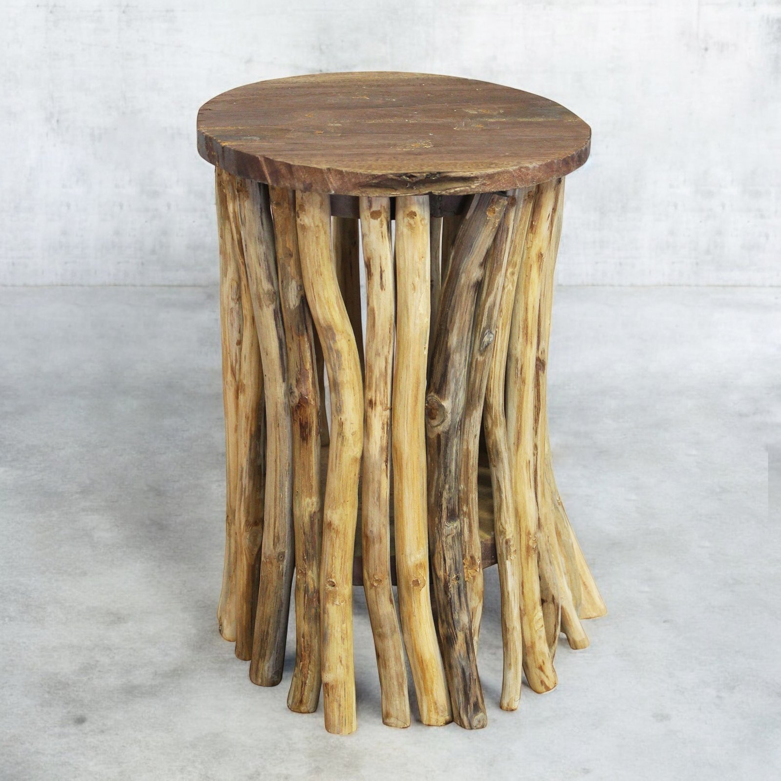 Il Tavolino basso in legno rustico – DIONEIA è un complemento d’arredo dal forte impatto visivo, pensato per chi ama lo stile shabby chic con un’anima naturale e autentica. Realizzato interamente in legno di teak, questo tavolino fisso unisce funzionalità e design attraverso una struttura originale composta da rami naturali e irregolari che sorreggono un piano tondo solido e compatto. La finitura marrone e le venature vive del legno donano calore e carattere a qualsiasi ambiente, rendendolo perfetto sia per l’arredo di casa che per spazi contract come bar o pub dallo stile ricercato e accogliente. Le dimensioni contenute (30x30x45 cm) lo rendono ideale come tavolino da salotto, piano d’appoggio creativo o complemento decorativo in un angolo lettura o relax. La ricercata imperfezione artigianale e l’unicità materica del legno grezzo trasmettono una sensazione di autenticità e vicinanza alla natura, valorizzando ogni ambiente con un tocco caldo ed elegante. Il tavolino DIONEIA si esprime al meglio in contesti dallo stile rustico o boho chic, creando un’atmosfera intima e avvolgente in cui ogni dettaglio racconta una storia.