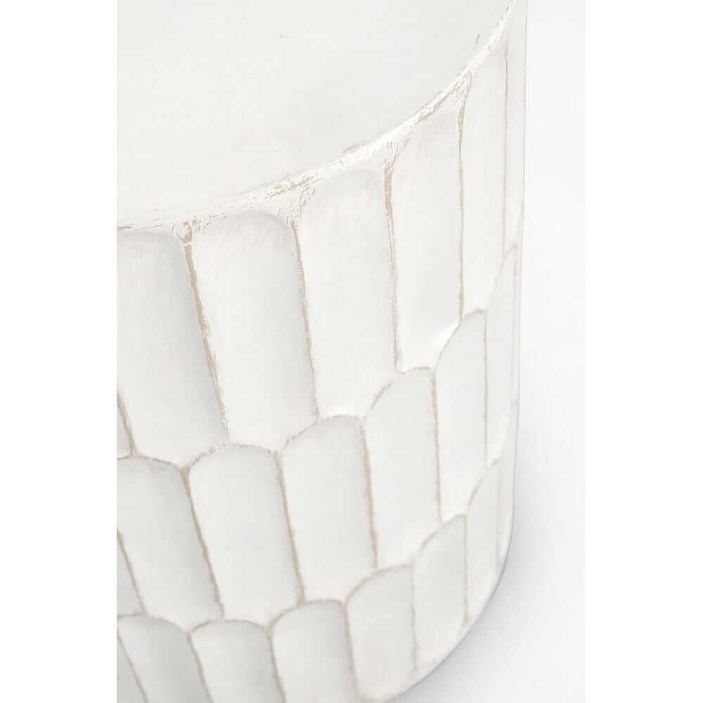 Il Tavolino Bianco Moderno da Interno Ø40.5 cm – ROAM è un complemento d’arredo dal forte impatto estetico, perfetto per valorizzare ambienti living raffinati e contemporanei. La sua struttura cilindrica in magnesia, con finitura finale a base di nitrocellulosa, si distingue per il motivo geometrico tridimensionale che gioca con la luce, creando un effetto visivo dinamico e sofisticato. Il colore bianco, elegante e luminoso, lo rende estremamente versatile, adattabile a qualsiasi palette cromatica e ideale per salotti moderni, angoli lettura o come originale base per una pianta d’appartamento o una lampada decorativa. La texture leggermente materica esalta il pregio artigianale del prodotto, conferendogli carattere e unicità. Il Tavolino Bianco Moderno da Interno ROAM unisce funzionalità e design con un’estetica delicata ma decisa, trasformando ogni spazio in un ambiente curato e accogliente. Ideale per chi cerca un arredo di piccole dimensioni ma dal grande effetto scenico, trova la sua massima espressione in contesti minimal, nordici o boho chic, dove diventa un dettaglio elegante e ricercato.