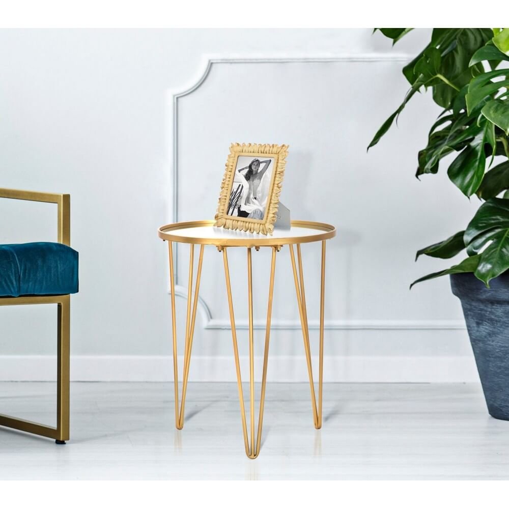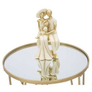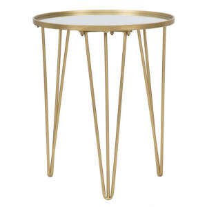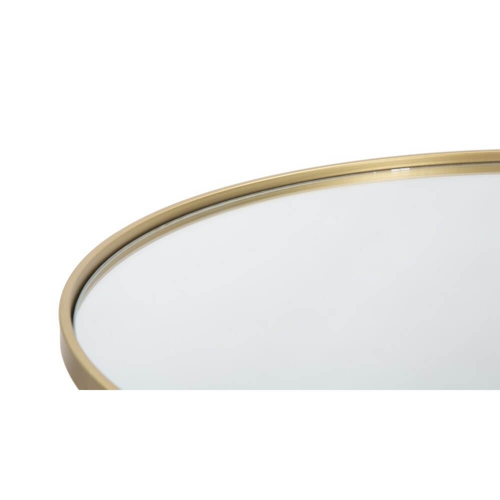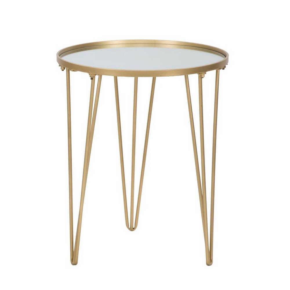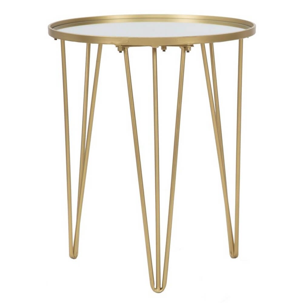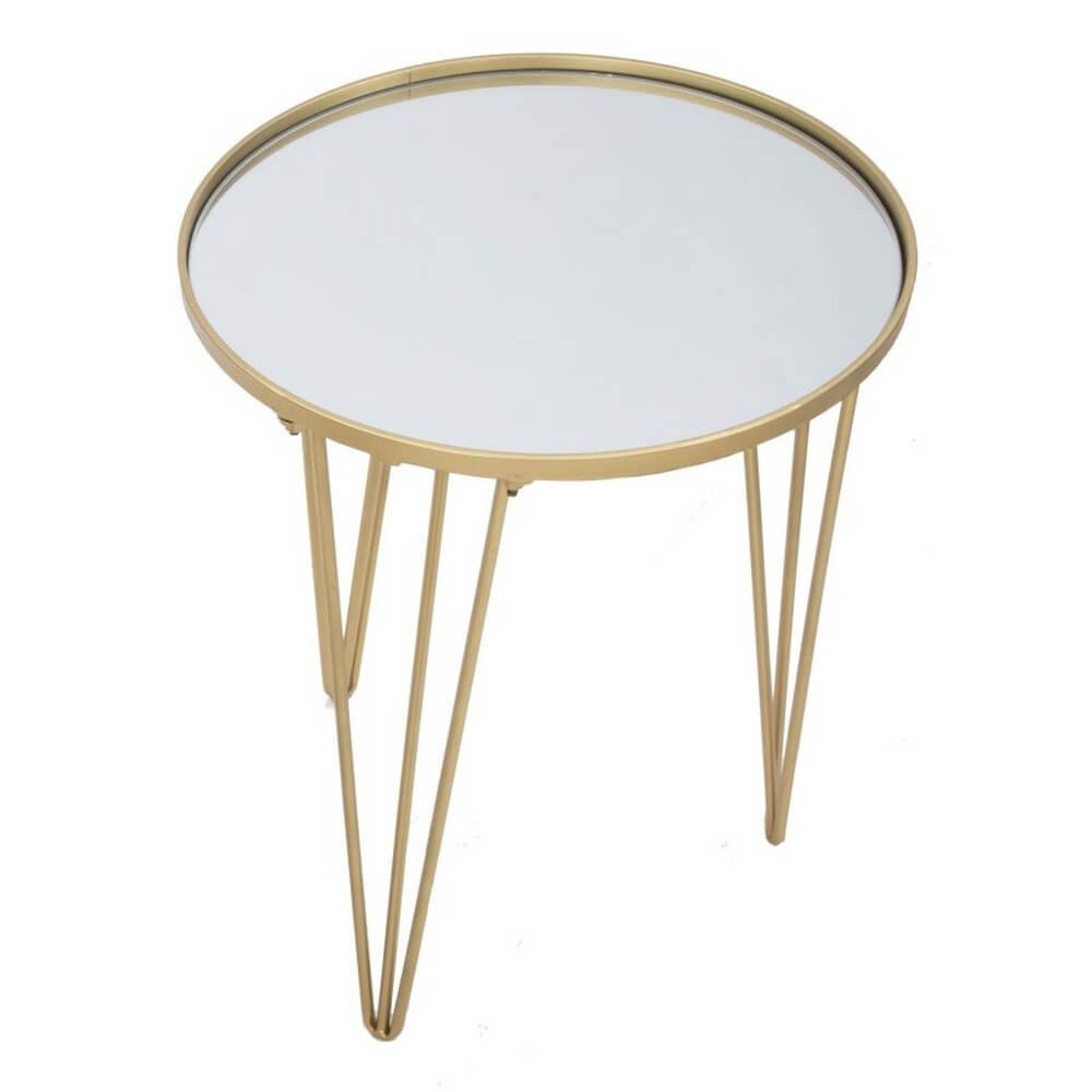 Tavolo da caffè rotondo in metallo dorato con piano in specchio. Un tocco d’oro non può mancare in una casa glam. Il tavolinetto da caffè è un elemento che diventa un punto luce in ogni ambiente