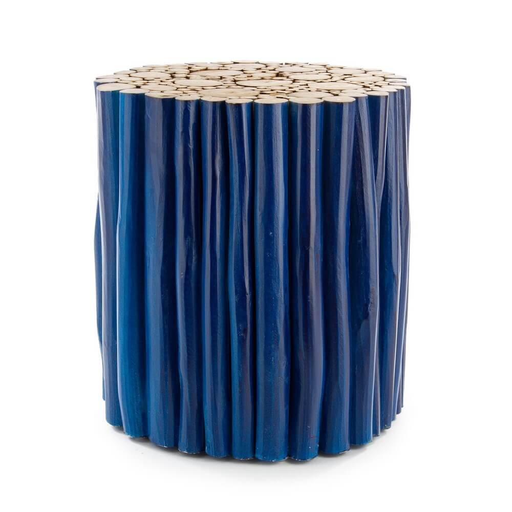 Il Tavolino in Teak Blu Moderno da Interno – DANTE è una proposta d’arredo audace e contemporanea, pensata per valorizzare ogni ambiente living con un tocco di originalità. Realizzato artigianalmente con rami naturali di teak, questo tavolino da salotto presenta una struttura cilindrica dal forte impatto visivo: i fusti lignei sono disposti verticalmente e rifiniti da una laccatura blu intensa, che ne esalta l’effetto scultoreo. La superficie superiore, lasciata naturale, crea un elegante contrasto cromatico e materico, evidenziando la bellezza autentica del legno. La finitura a base di nitrocellulosa garantisce una protezione durevole e una resa visiva lucida, perfetta per interni moderni, eclettici o boho-chic. Il DANTE si distingue per l’armonia tra natura e design contemporaneo, trasformandosi facilmente in un pezzo protagonista, ideale sia come tavolino sia come elemento decorativo. In un soggiorno accogliente, accanto a un divano minimal o a una poltrona di carattere, questo arredo si esprime al meglio, trasmettendo energia creativa e raffinatezza materica.