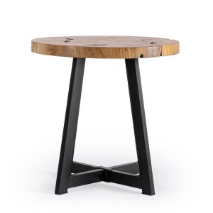 Il Tavolino in Teak Marrone Industriale da Interno Ø50 cm – MIRANDA rappresenta l’incontro perfetto tra natura e design contemporaneo, pensato per dare un tocco autentico e sofisticato agli ambienti living. Il piano, ricavato da radici originali di teak, rende ogni pezzo unico nel suo genere grazie alle forme e venature naturali, esaltate da una finitura a base di nitrocellulosa che ne valorizza il calore e la profondità cromatica. Le solide gambe in acciaio verniciato nero creano un elegante contrasto materico, sottolineando lo stile industriale del tavolino e garantendo al contempo una struttura robusta e stabile. Ideale come tavolino da salotto, elemento d’accento o complemento nei contesti più moderni e urban, il modello MIRANDA aggiunge carattere senza appesantire l’ambiente, grazie al suo diametro compatto di 50 cm. Questo arredo dona immediatamente personalità allo spazio, fondendo artigianalità e gusto industrial chic, e si rivela particolarmente prezioso in soggiorni e spazi open space dove si vuole far risaltare un elemento decorativo autentico e materico.