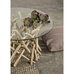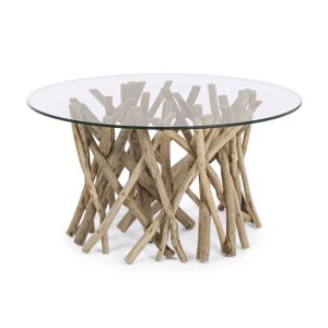 Il Tavolino in Teak Marrone Rustico da Interno Ø80 cm – KAI è una raffinata fusione tra natura e design contemporaneo, pensata per impreziosire ambienti interni con un tocco autentico e sofisticato. La base, realizzata con rami di teak intrecciati in modo organico e lasciati nella loro finitura naturale, esprime un’estetica artigianale e materica che richiama il fascino rustico delle forme irregolari del legno grezzo. A contrasto, il piano rotondo in vetro temperato da 10 mm dona leggerezza ed eleganza visiva, valorizzando la struttura sottostante e offrendo una superficie resistente e pratica. Questo tavolino da salotto si integra perfettamente in contesti di arredo ispirati allo stile etnico, rustico chic o naturale, diventando un elemento scultoreo capace di catturare lo sguardo. Il Tavolino in Teak Marrone Rustico da Interno Ø80 cm – KAI è ideale per ambienti living, lounge o angoli conversazione dove il design incontra il calore dei materiali autentici, regalando un’esperienza visiva e tattile di grande impatto.