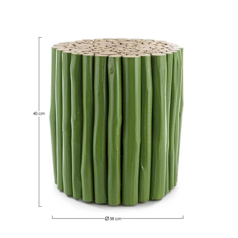 Il Tavolino in Teak Verde Rustico da Esterno – DANTE è un complemento d’arredo unico e affascinante, pensato per valorizzare ambienti outdoor con uno stile naturale e deciso. Realizzato con autentici rami di teak e rifinito con un’elegante vernice verde a base di nitrocellulosa, questo tavolino si distingue per la sua estetica organica e materica, che richiama la purezza dei tronchi appena tagliati. La superficie superiore, composta dalle sezioni dei rami lasciate a vista in finitura naturale, crea un piacevole contrasto cromatico e tattile, amplificando il carattere artigianale del pezzo. La struttura cilindrica e il design rustico ma raffinato lo rendono perfetto per arredare con personalità giardini, terrazze o verande in stile etnico, boho o eco-chic. La robustezza tipica del teak assicura resistenza agli agenti atmosferici, rendendolo ideale anche per un uso continuativo all’esterno. Il Tavolino in Teak Verde Rustico da Esterno – DANTE è più di un semplice tavolino: è una scultura funzionale che dona calore naturale e un tocco di originalità al tuo spazio all’aperto, trasformando ogni momento di relax in un’esperienza immersiva nella natura.