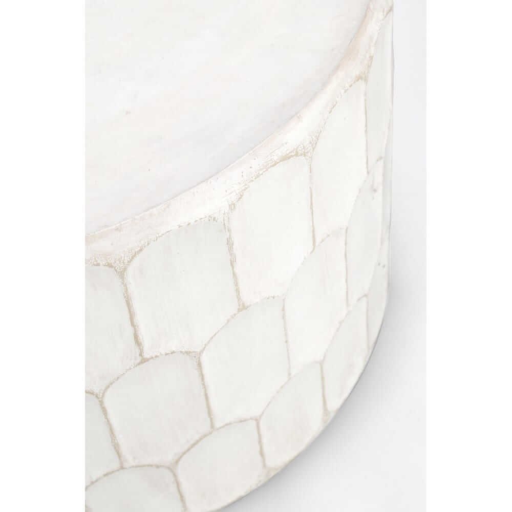 Il Tavolino Legno Bianco Boho da Interno Ø66 cm – ROAM è una raffinata espressione di stile boho chic, pensata per arricchire con eleganza ogni salotto moderno. La sua forma cilindrica compatta e il diametro contenuto lo rendono ideale sia come tavolino da caffè che come complemento d’arredo distintivo. Realizzato in legno con struttura in magnesia, è rifinito con cura grazie a una verniciatura a base di nitrocellulosa che dona una delicata texture opaca e un aspetto artigianale. Il colore bianco, leggermente sfumato, esalta le geometrie del rivestimento laterale, composto da moduli arcuati che richiamano motivi etnici ed evocano atmosfere rilassate e naturali. Questo tavolino da salotto della linea ROAM si integra perfettamente in ambienti dallo stile eclettico, bohemien o coastal, portando luce e leggerezza visiva negli spazi interni. Versatile e decorativo, è ideale accanto a un divano in lino o come supporto per un vaso in ceramica, valorizzando l’ambiente circostante con il suo carattere autentico. Perfetto per chi desidera un elemento d’arredo funzionale e al tempo stesso ricco di personalità, capace di trasmettere una sensazione di armonia e calore domestico.