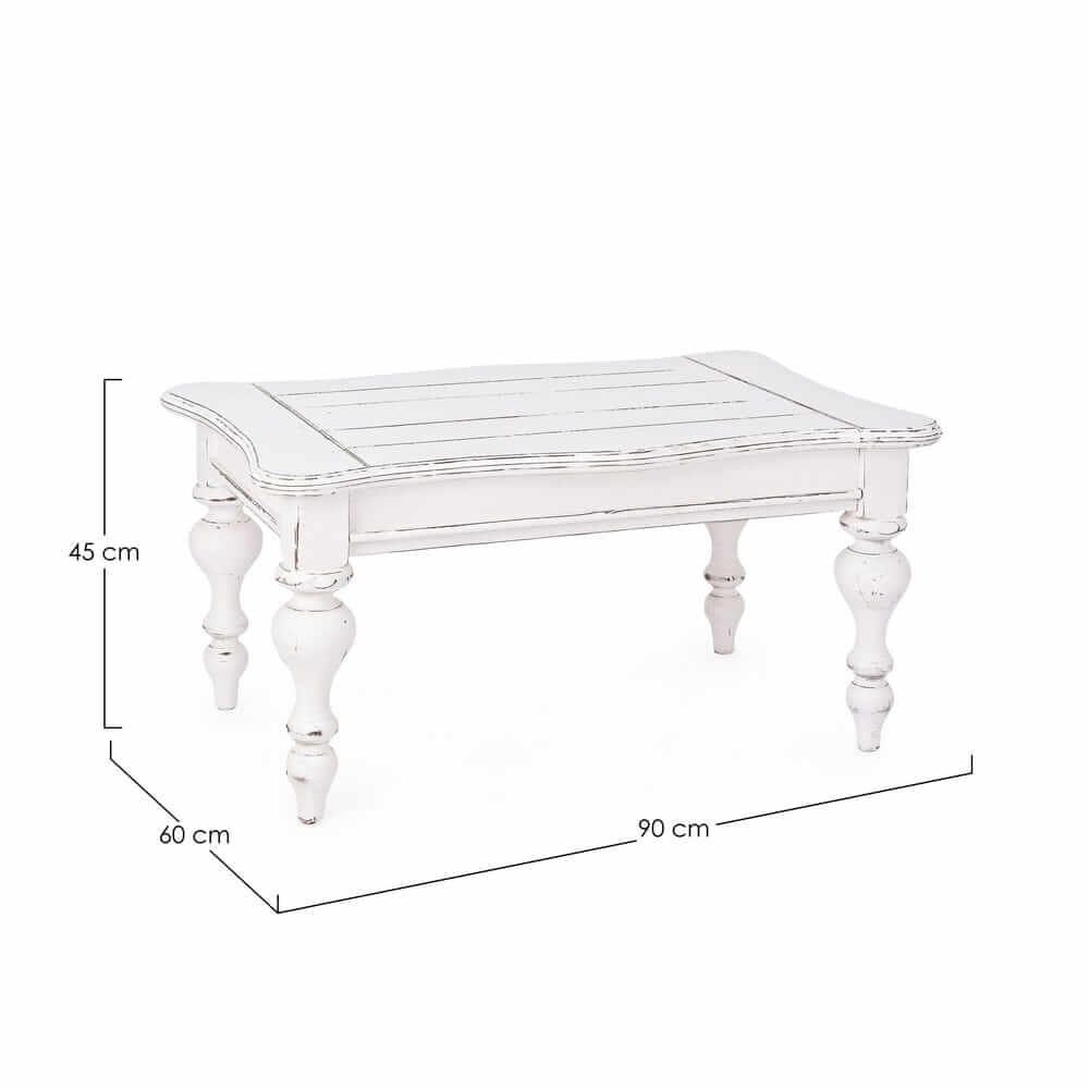 Il Tavolino Legno Bianco Rustico da Interno 60×90 cm – MAEVE è la scelta ideale per chi desidera donare un tocco di eleganza vintage e calore autentico al proprio salotto. Interamente realizzato in legno di mango massiccio, questo tavolino da caffè si distingue per la sua finitura bianca decapata, ottenuta con verniciatura a base di nitrocellulosa, che esalta le venature naturali del legno e aggiunge un affascinante effetto vissuto. Il design rétro dalle linee dolcemente curve e le gambe tornite, ricche di dettagli, evocano atmosfere romantiche e rustiche, perfette per ambienti in stile shabby chic, provenzale o country. Grazie alle dimensioni compatte, il MAEVE si inserisce con discreta eleganza in spazi domestici di ogni tipo, diventando un elemento funzionale ma anche fortemente decorativo. Ideale come tavolino da salotto o punto d’appoggio in un angolo lettura, esprime al meglio il suo valore in contesti caldi e accoglienti, regalando personalità e fascino senza tempo all’ambiente.