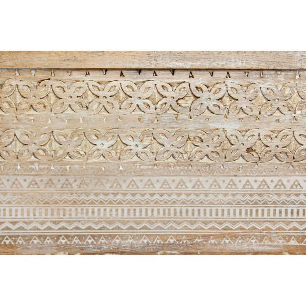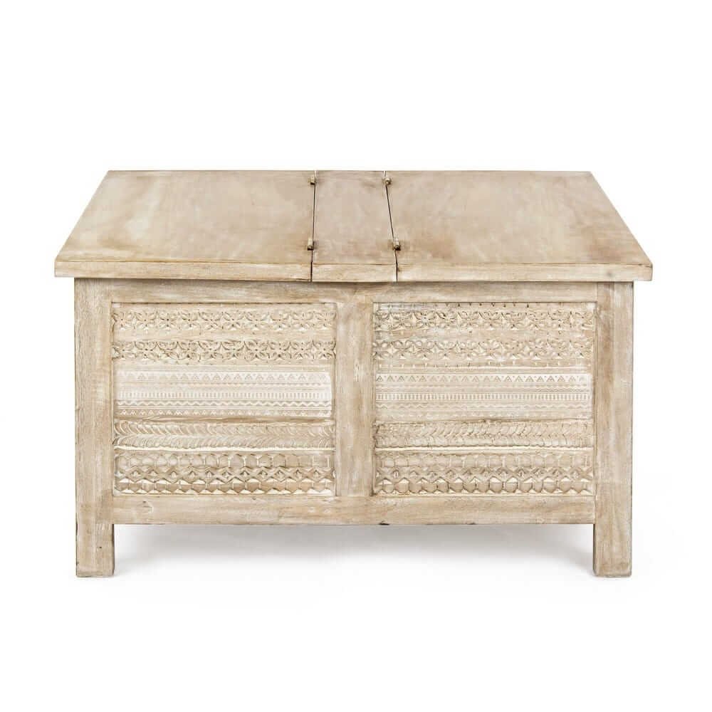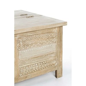 Il Tavolino Legno Naturale Rustico da Interno – LENA è un complemento d’arredo che unisce funzionalità e raffinata artigianalità, perfetto per valorizzare ambienti dal gusto rustico, boho o etnico chic. Realizzato in pregiato legno di mango, questo tavolino da salotto si distingue per le eleganti decorazioni intarsiate a mano sui pannelli laterali, che aggiungono un tocco di autenticità e unicità a ogni pezzo. La finitura naturale, esaltata da una verniciatura a base di nitrocellulosa, mantiene visibili le venature e le imperfezioni del legno, conferendo calore e personalità all’ambiente. Il piano apribile, pratico e discreto, offre uno spazio contenitivo aggiuntivo, ideale per riporre oggetti, riviste o accessori, mantenendo ordine con stile. Il design solido e proporzionato si presta perfettamente all’utilizzo in soggiorni o zone relax, diventando un punto focale grazie alla sua bellezza materica e alla lavorazione artigianale. Il tavolino LENA esprime il meglio di sé in ambienti accoglienti dove si desidera creare atmosfere intime e naturali, offrendo ogni giorno l’esperienza di un arredo capace di raccontare una storia attraverso ogni suo dettaglio.