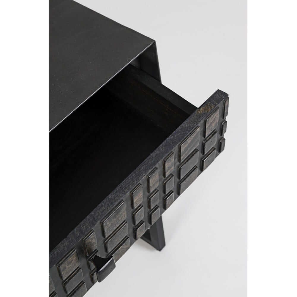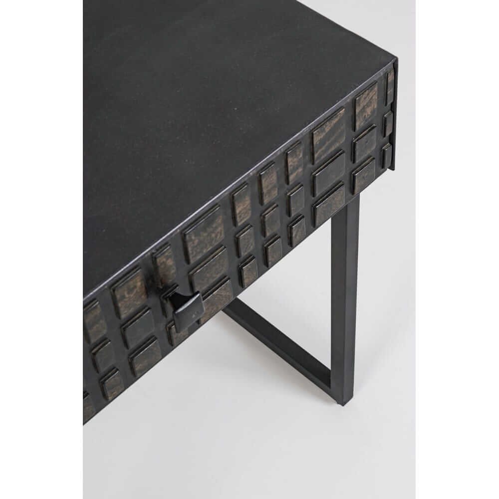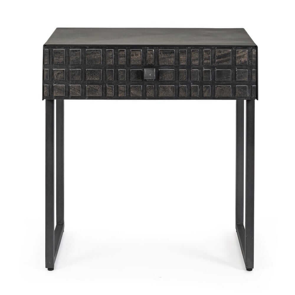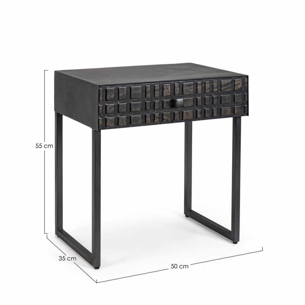 Il Tavolino Legno Nero Industriale da Interno – BRIGHTON è un pezzo dall’estetica forte e raffinata, perfetto per chi ama l’arredo casa dal carattere deciso e contemporaneo. Con una struttura solida in acciaio verniciato a polvere epossidica e un vano frontale in legno di mango, si distingue per il disegno geometrico tridimensionale delle superfici, che dona profondità e dinamismo visivo. La finitura nera, elegante e versatile, esalta l’effetto materico e valorizza ogni dettaglio artigianale, rendendo questo tavolino ideale per ambienti in stile industriale, minimal o urban chic. La texture intagliata è un elemento distintivo che cattura l’attenzione, aggiungendo personalità al salotto o all’ingresso. Il BRIGHTON trova la sua massima espressione in spazi moderni dove può essere utilizzato sia come tavolino da salotto che come punto d’appoggio laterale, unendo design ricercato e funzionalità quotidiana.