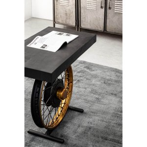 Il Tavolino Legno Nero Industriale da Interno – HORIZON è un pezzo d’arredo audace e originale, pensato per chi vuole valorizzare il proprio salotto con un tocco urban chic ispirato al design industriale. La struttura in acciaio nero, solida e imponente, è dominata da una ruota centrale scenografica con dettagli dorati che richiama il mondo delle officine e del recupero creativo, conferendo carattere e unicità all’ambiente. Il piano, realizzato in autentico legno di mango tinto nero, aggiunge calore materico e contrasta elegantemente con il rigore del metallo. Essendo frutto di lavorazione artigianale, ogni pezzo della linea HORIZON risulta unico, con impercettibili variazioni che ne esaltano l’autenticità. La parte superiore è da assemblare, il che facilita il trasporto e sottolinea la cura per i dettagli nella progettazione. Ideale per ambienti in stile industriale, vintage o loft metropolitani, questo tavolino da salotto fonde perfettamente estetica e funzionalità. Il Tavolino Legno Nero Industriale da Interno – HORIZON si esprime al meglio in spazi contemporanei dove design e personalità si incontrano, diventando il protagonista indiscusso del living.