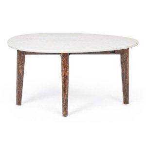 Il Tavolino Marmo Bianco Moderno da Interno 70×50 cm – JAXON è una scelta raffinata per chi desidera arricchire il proprio salotto con un elemento d’arredo dallo stile essenziale e ricercato. Il piano in marmo bianco, liscio e dalla texture naturale, conferisce un’eleganza senza tempo e si combina armoniosamente con le gambe affusolate in legno di mango a vista, finemente trattate con una finitura a base d’acqua che ne valorizza le venature calde e autentiche. La silhouette ovale con profili morbidi accentua un design ispirato al minimalismo moderno, adattandosi con equilibrio tanto ad ambienti contemporanei quanto a interni dal gusto più classico o nordico. Perfetto come tavolino da salotto, il modello JAXON unisce funzionalità e pregio materico, offrendo una solida stabilità e una superficie durevole. Ideale per accogliere riviste, piccoli oggetti decorativi o semplicemente una tazza di caffè durante momenti di relax, questo tavolo da interno esprime al meglio il suo valore in ambienti accoglienti e curati, donando personalità e carattere con discreta eleganza.