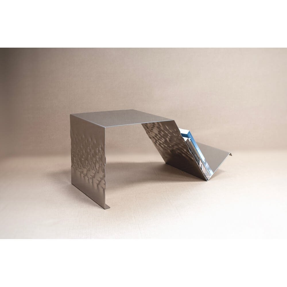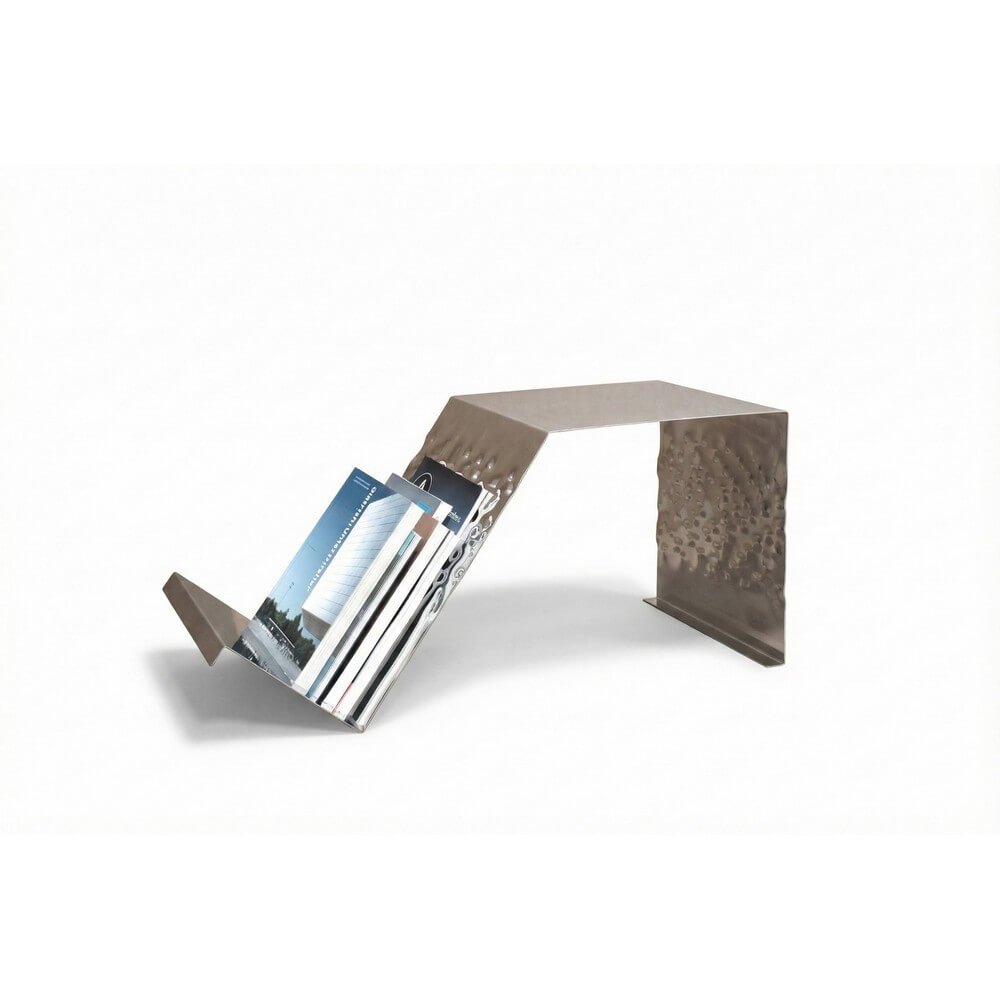 Il Tavolino porta riviste in acciaio lucidato ed effetto bark – Miroir รจ la soluzione perfetta per chi desidera arricchire il proprio salotto o area living con un complemento dโarredo di design contemporaneo, raffinato e funzionale. Realizzato interamente in acciaio inox argentato, questo tavolino si distingue per la superficie specchiata e la particolare lavorazione effetto bark, che richiama la texture naturale della corteccia e crea raffinati giochi di luce e riflessi, donando profonditร e movimento allโambiente. Le dimensioni compatte (45x37x37 cm) lo rendono ideale sia come coffee table che come pratico porta riviste, offrendo uno spazio ordinato e sempre a portata di mano per libri, cataloghi e magazine. La qualitร costruttiva dellโacciaio inox garantisce resistenza, brillantezza duratura e facilitร di pulizia, mentre il design geometrico e le linee pulite si adattano armoniosamente a diversi stili dโarredo, dal minimalista al moderno o industrial. Perfetto per ambienti residenziali e professionali, il tavolino Miroir valorizza ogni spazio grazie alla sua presenza scenica e alla versatilitร , trasformando ogni momento di relax o convivialitร in unโesperienza di stile, comfort e ordine.