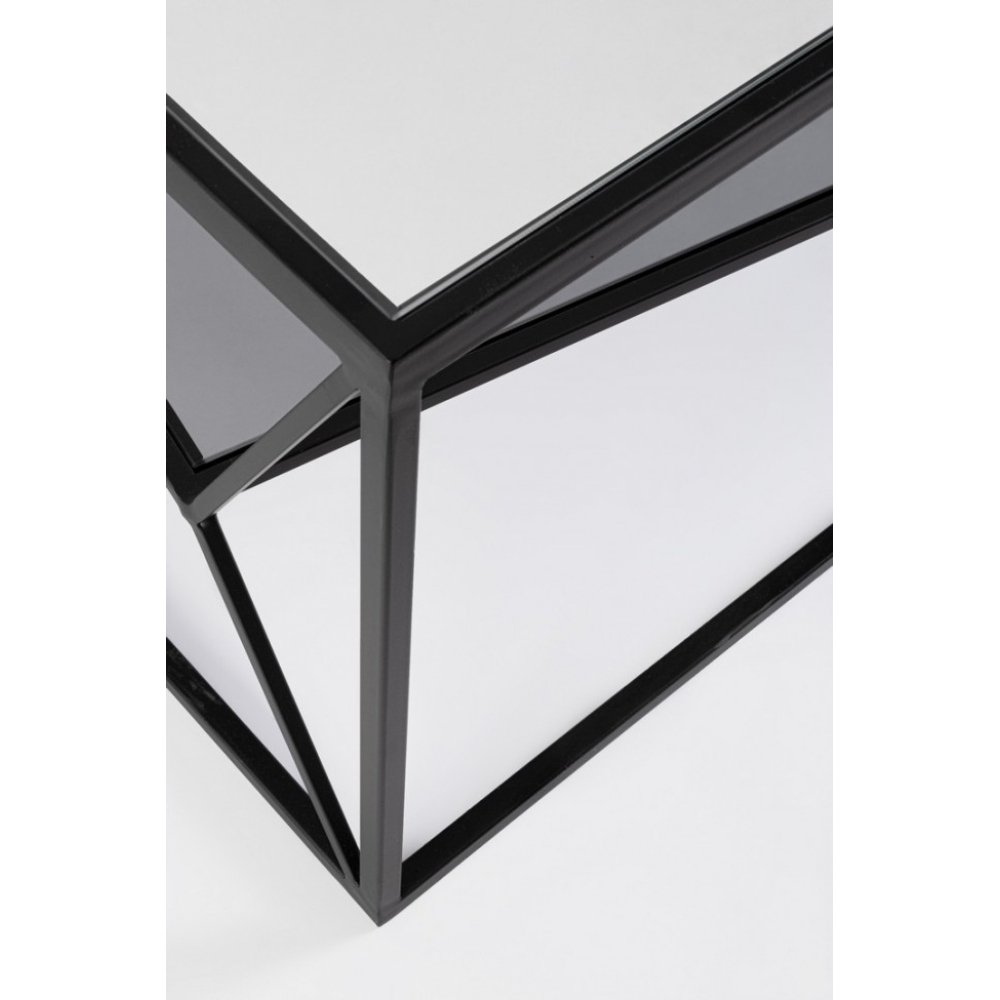 Il Tavolino Vetro Nero Industriale da Interno 70×70 – KATHERINE è la scelta ideale per chi desidera un complemento d’arredo sofisticato e al tempo stesso audace, perfetto per ambienti moderni e dallo stile industrial. Il design geometrico e pulito, impreziosito da una struttura in acciaio verniciata a polvere epossidica, esprime solidità e leggerezza visiva in un equilibrio perfetto. I due piani in vetro temperato, uno trasparente e l’altro fumé, creano un piacevole gioco di profondità e riflessi, offrendo praticità e raffinatezza in un unico gesto. Il colore nero dona un tocco deciso ed elegante, capace di impreziosire qualsiasi salotto o zona living contemporanea. Perfetto per accogliere libri, riviste o oggetti decorativi, il tavolino KATHERINE non è solo funzionale, ma anche un elemento d’espressione stilistica, ideale per completare spazi interni dal carattere deciso. Inserito in un ambiente urban chic o in un loft metropolitano, questo tavolino saprà valorizzare ogni dettaglio dell’arredo con una presenza discreta ma di forte impatto estetico.