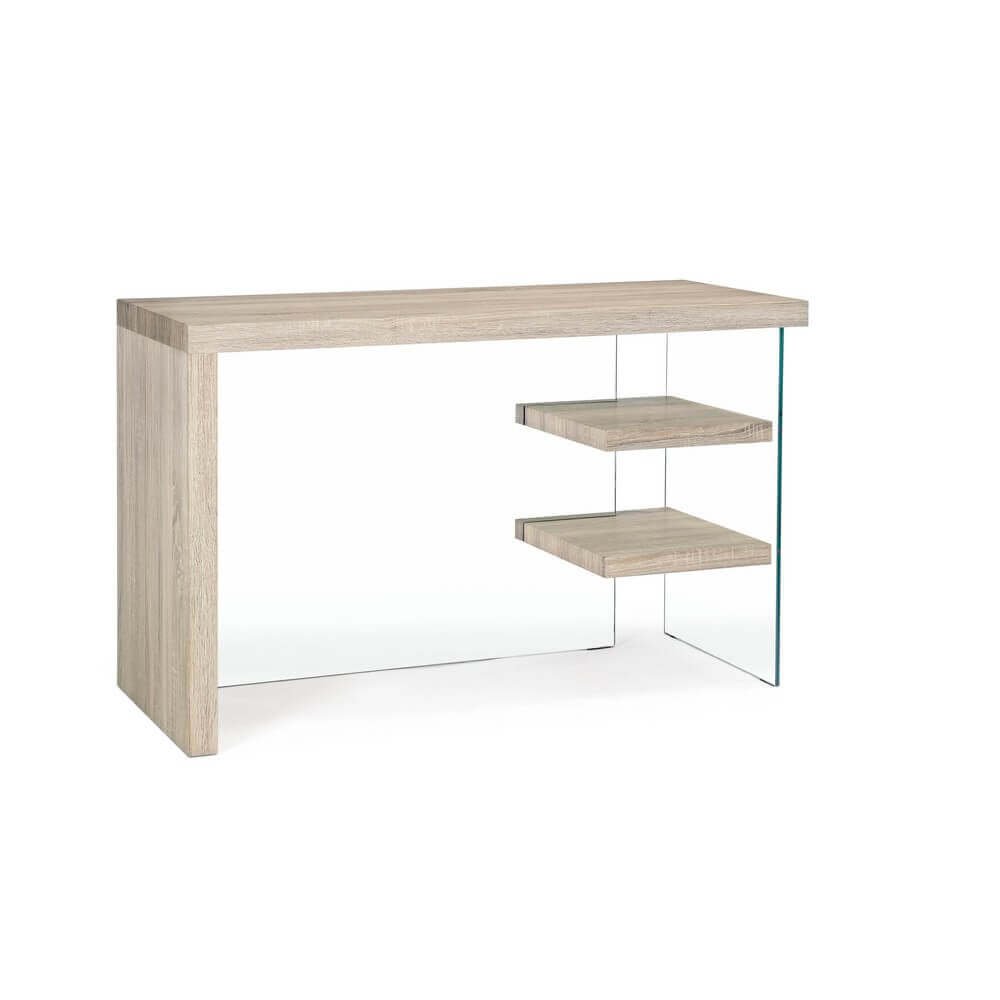 Piano, mensole e fianco sinistro in mdf rivestito con carta melaminica effetto legno. schiena e fianco dx in vetro temperato spessore 10mm. portata max mensole 2kg. da assemblare.