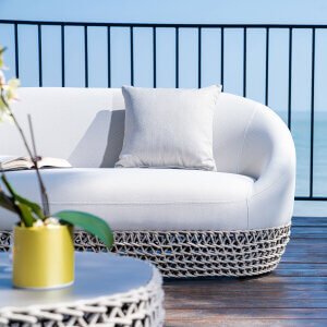 Il divano da giardino LOTUS a 2 posti è un’espressione di eleganza contemporanea, perfetto per chi desidera arredare gli spazi outdoor con raffinatezza e comfort senza compromessi. La struttura in alluminio assicura leggerezza e resistenza agli agenti atmosferici, mentre l’intreccio in corde da 8 mm, disponibile nelle tonalità beige o grigio, crea un effetto sofisticato che esalta ogni ambiente esterno. Le sue proporzioni generose e il design avvolgente offrono un’esperienza di relax esclusiva, trasformando giardini e terrazze in veri e propri salotti a cielo aperto.
