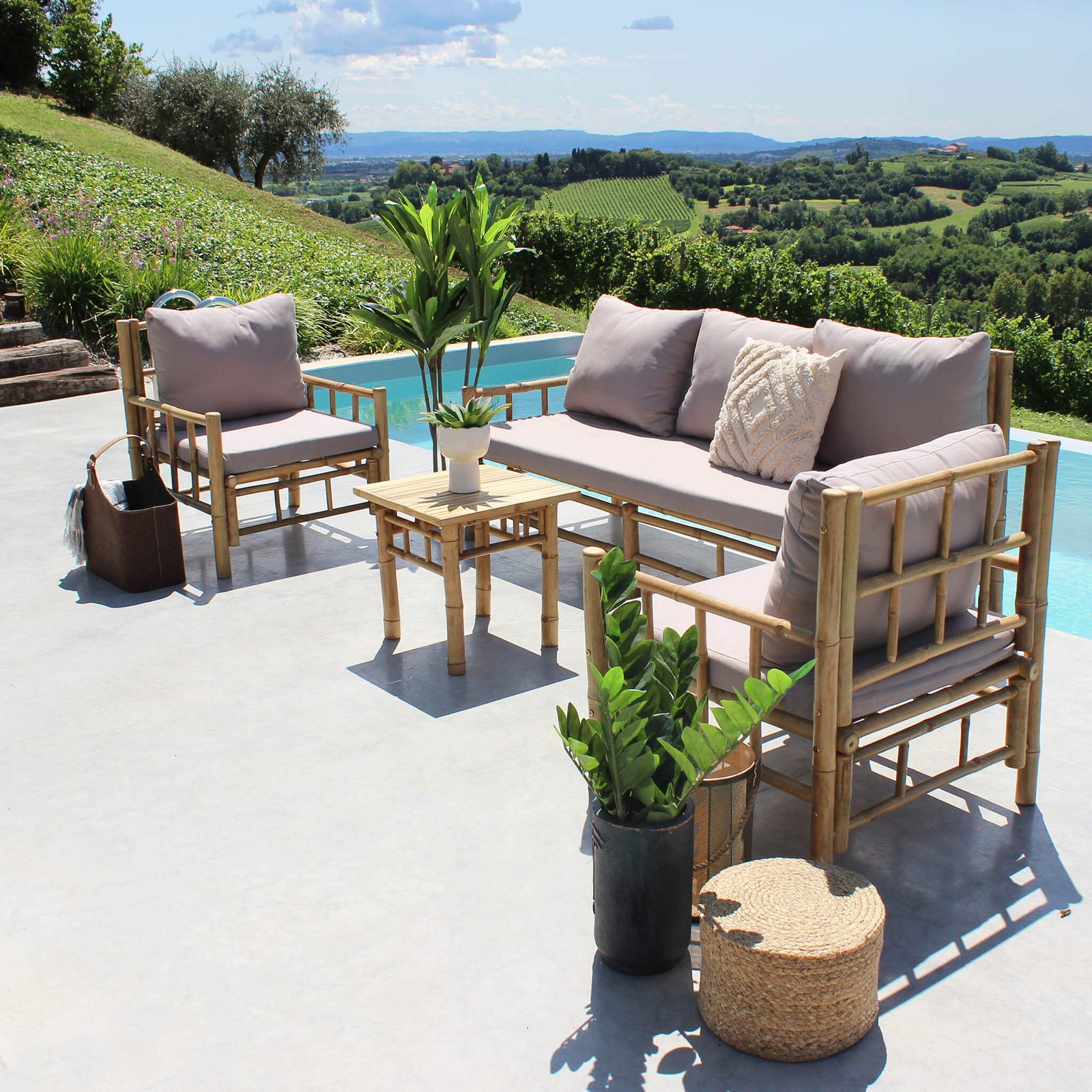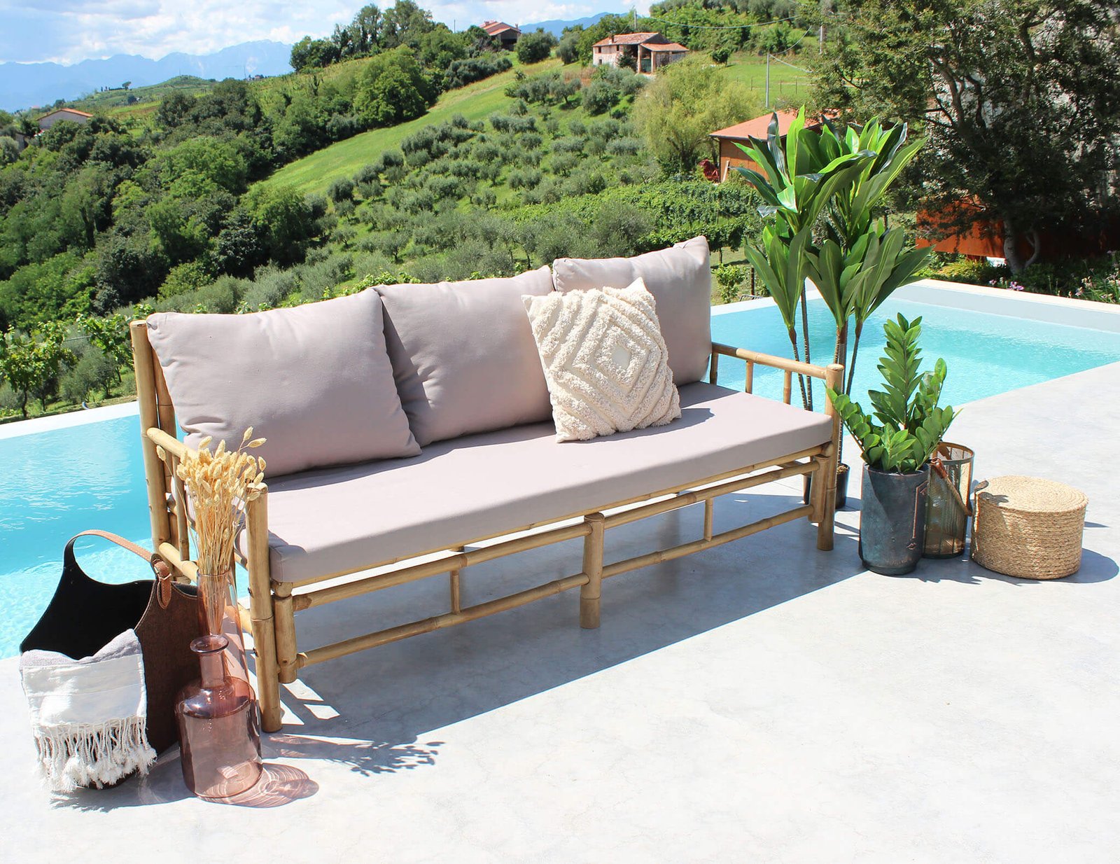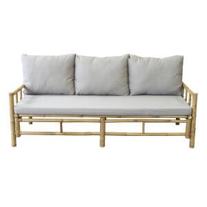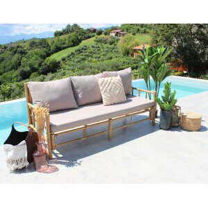 Il Divano da giardino in bamboo RITA è la soluzione perfetta per chi desidera arredare il proprio spazio esterno con eleganza naturale e comfort. Realizzato artigianalmente in autentico bambù, questo divano dallo stile esotico e rilassato esprime al primo sguardo un’eleganza semplice e autentica, perfetta per ambienti outdoor come terrazze, verande o giardini. Le linee essenziali e leggere della struttura marrone si fondono armoniosamente con il grigio delicato dei cuscini in poliestere, creando un equilibrio sereno e raffinato. I morbidi cuscini offrono una seduta confortevole, mentre le generose dimensioni (180 x 70 cm) e lo schienale alto 80 cm assicurano un’esperienza di relax completa. Grazie alla struttura robusta e al design versatile, questo divano letto da esterno si adatta perfettamente sia a uno stile etnico che a uno più contemporaneo e minimale. Il Divano RITA valorizza ogni contesto open air, dalla lettura sotto il portico a una chiacchierata conviviale in giardino, trasformando ogni momento all’aperto in un’esperienza di benessere e naturale raffinatezza.