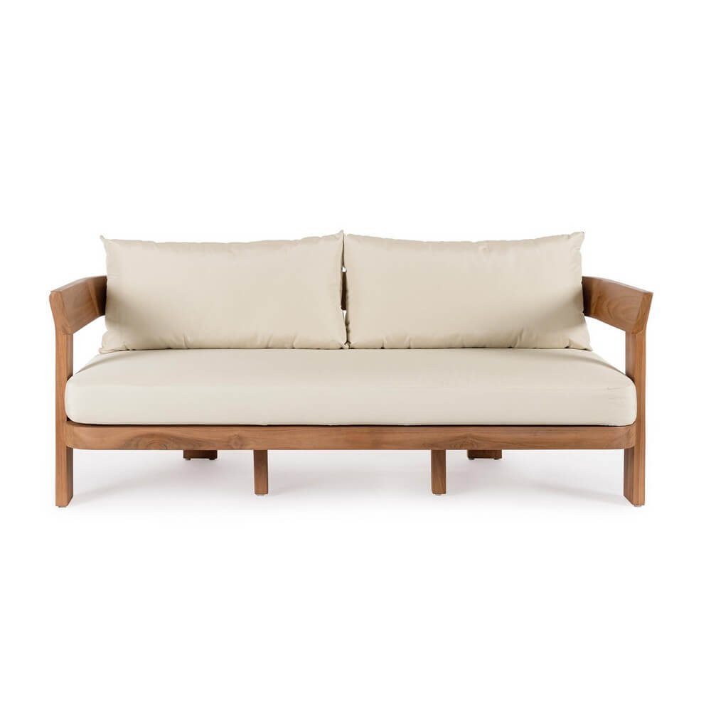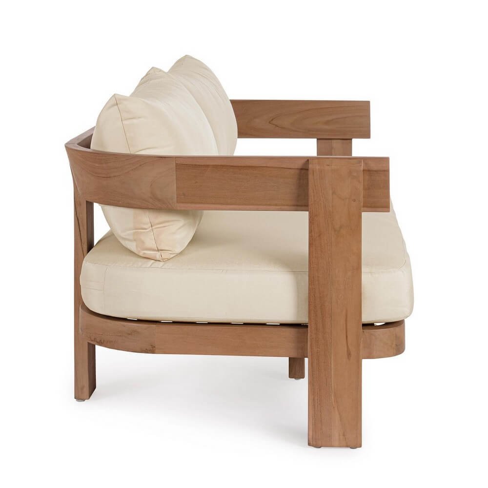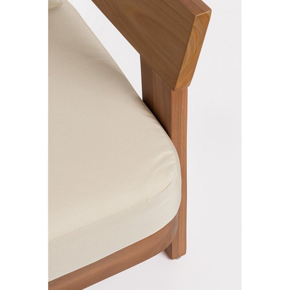 Elegante e dal design essenziale, il Divano da Giardino in Teak Marrone Moderno da Esterno – ZAFIRA è la perfetta sintesi tra stile contemporaneo e materiali naturali di alta qualità. Realizzato in teak certificato SVLK proveniente da foreste sostenibili, questo divano presenta una struttura solida e minimalista, valorizzata da una finitura a base d’acqua che ne esalta le venature calde e autentiche del legno. I cuscini in tessuto Sunproof Olefin, idrorepellente e 100% sfoderabile, aggiungono un tocco di comfort e praticità, resistendo agli agenti atmosferici e donando una piacevole morbidezza al tatto. I toni neutri del rivestimento si fondono armoniosamente con il marrone naturale del legno, creando un equilibrio visivo raffinato e accogliente. Il divano ZAFIRA si inserisce con naturalezza in ambienti di arredo da esterno come terrazze, verande o giardini, dove diventa protagonista di momenti di relax e convivialità all’aria aperta. Grazie alle sue linee pulite e al design moderno, questo divano da giardino in teak coniuga bellezza estetica e funzionalità, offrendo un’esperienza d’uso all’insegna del comfort e della sostenibilità.
