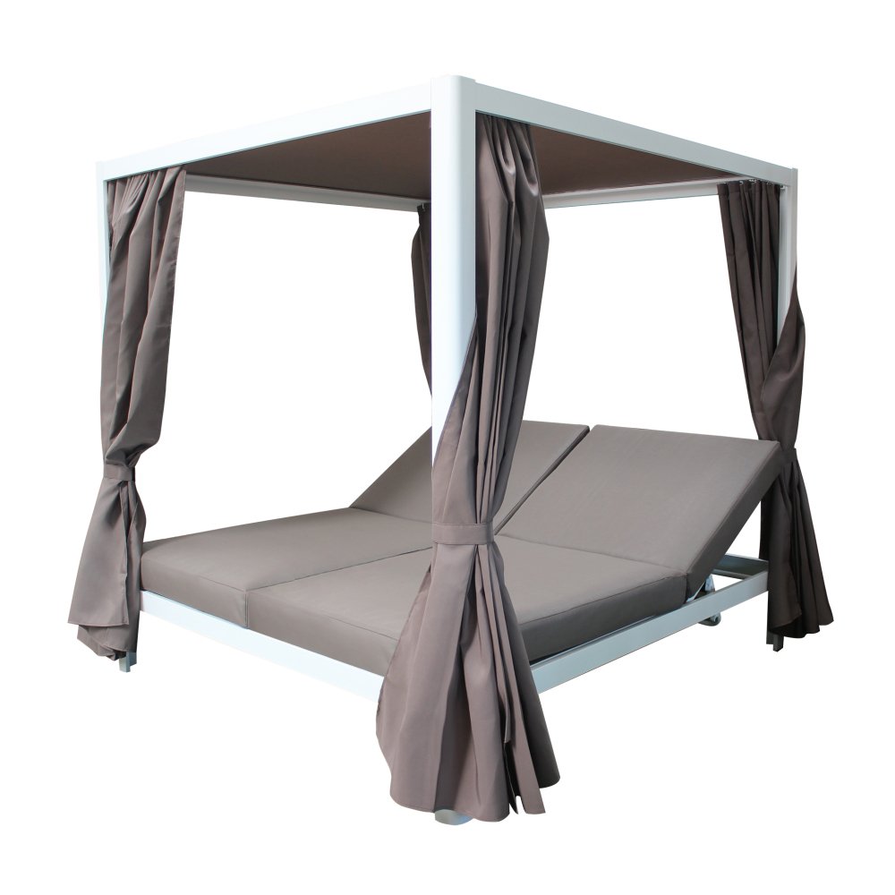 Con la sua doppia superficie per sdraiarsi, il gazebo letto RICH è perfetto per una seduta comoda o anche come pratico letto. Puoi regolare lo schienale per trovarti nella posizione ideale per goderti il sole o leggere un buon libro.