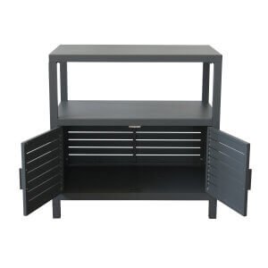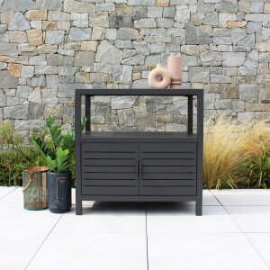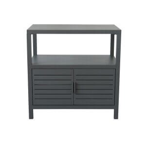 Il Mobiletto contenitore da giardino in alluminio – PHIL è la soluzione perfetta per chi desidera un complemento d’arredo da esterno funzionale e dal design pulito. Realizzato interamente in alluminio verniciato antracite, un materiale resistente agli agenti atmosferici e dalla manutenzione minima, offre un’estetica contemporanea ed essenziale, ideale per arredare con stile terrazzi, verande o spazi outdoor moderni. Grazie alla struttura compatta da 90 x 55 x 90 cm, il mobiletto PHIL è perfetto per contenere utensili da giardinaggio, accessori per la cura degli spazi esterni o piccoli oggetti da tenere al riparo ma sempre a portata di mano. Le linee squadrate, abbinate alle ante a doghe orizzontali, conferiscono al prodotto un’eleganza minimal che si integra con facilità ai più svariati stili di arredo da giardino. Il ripiano superiore e la mensola centrale offrono superficie d’appoggio utile anche come piano di lavoro temporaneo o angolo decorativo. Perfetto per valorizzare l’organizzazione degli spazi esterni, il mobiletto contenitore PHIL unisce versatilità e robustezza, offrendo un’esperienza d’uso pratica ed esteticamente raffinata in ogni ambiente outdoor.
