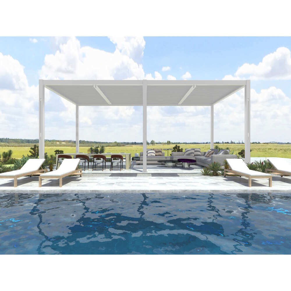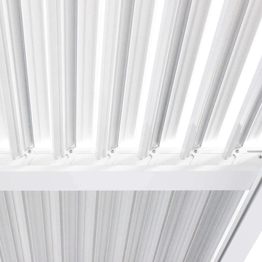 Il design della Pergola TONY presenta un tetto suddiviso in due sezioni, che permette di regolare manualmente l’ombra e la ventilazione per adattarsi alle tue esigenze. Le alette del tetto possono essere regolate con facilità, offrendo la possibilità di ottimizzare la luce e la protezione contro le intemperie.
