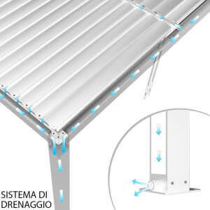 Disponibile in diverse dimensioni – 3×3, 3×4, 4×4, 5,8×3 e 7,8×4 metri – la Pergola TONY si adatta perfettamente a vari ambienti esterni, dal giardino alla terrazza. Puoi scegliere tra tre finiture diverse: bianco, antracite ed effetto legno, per abbinare la pergola al design del tuo spazio esterno e ottenere l’aspetto desiderato.