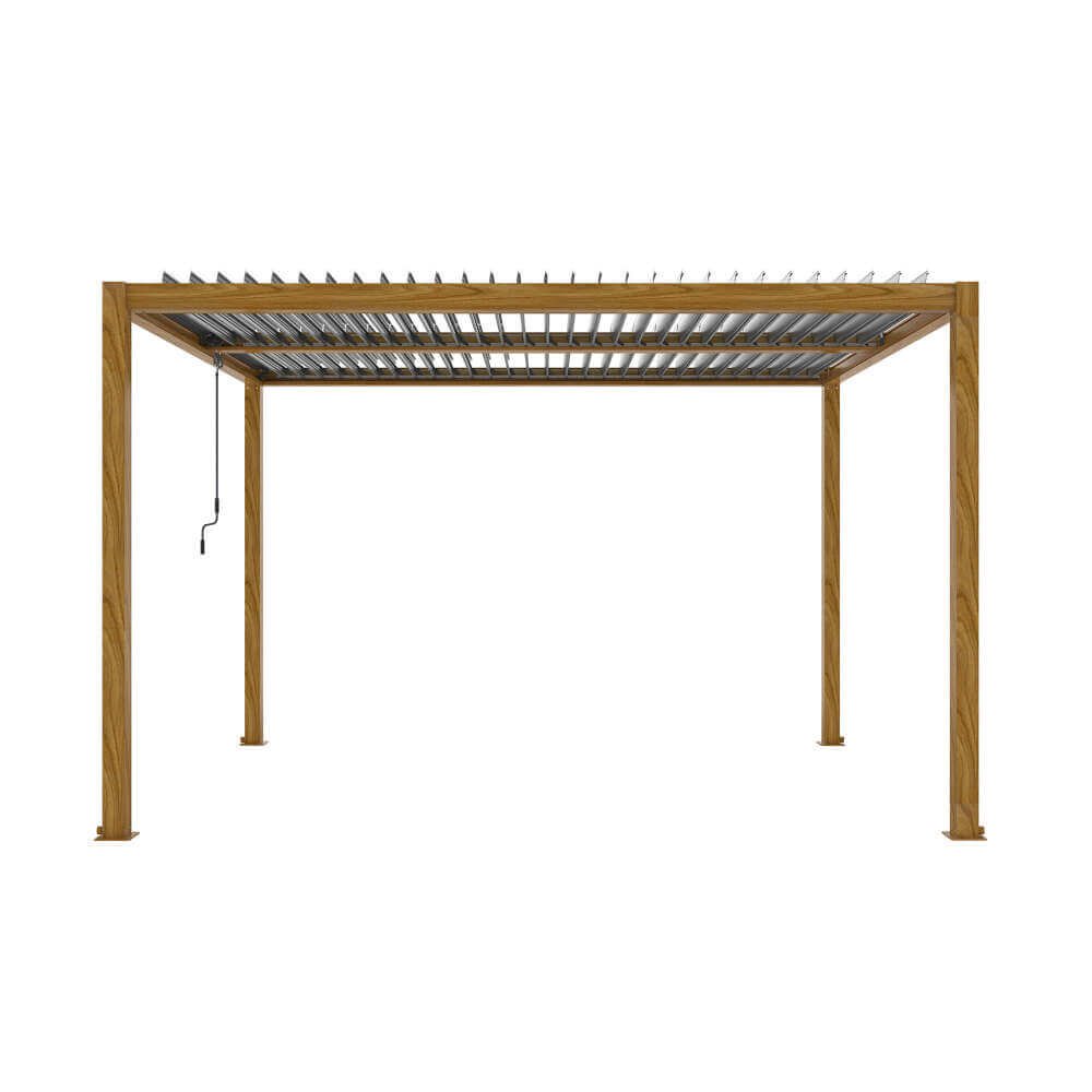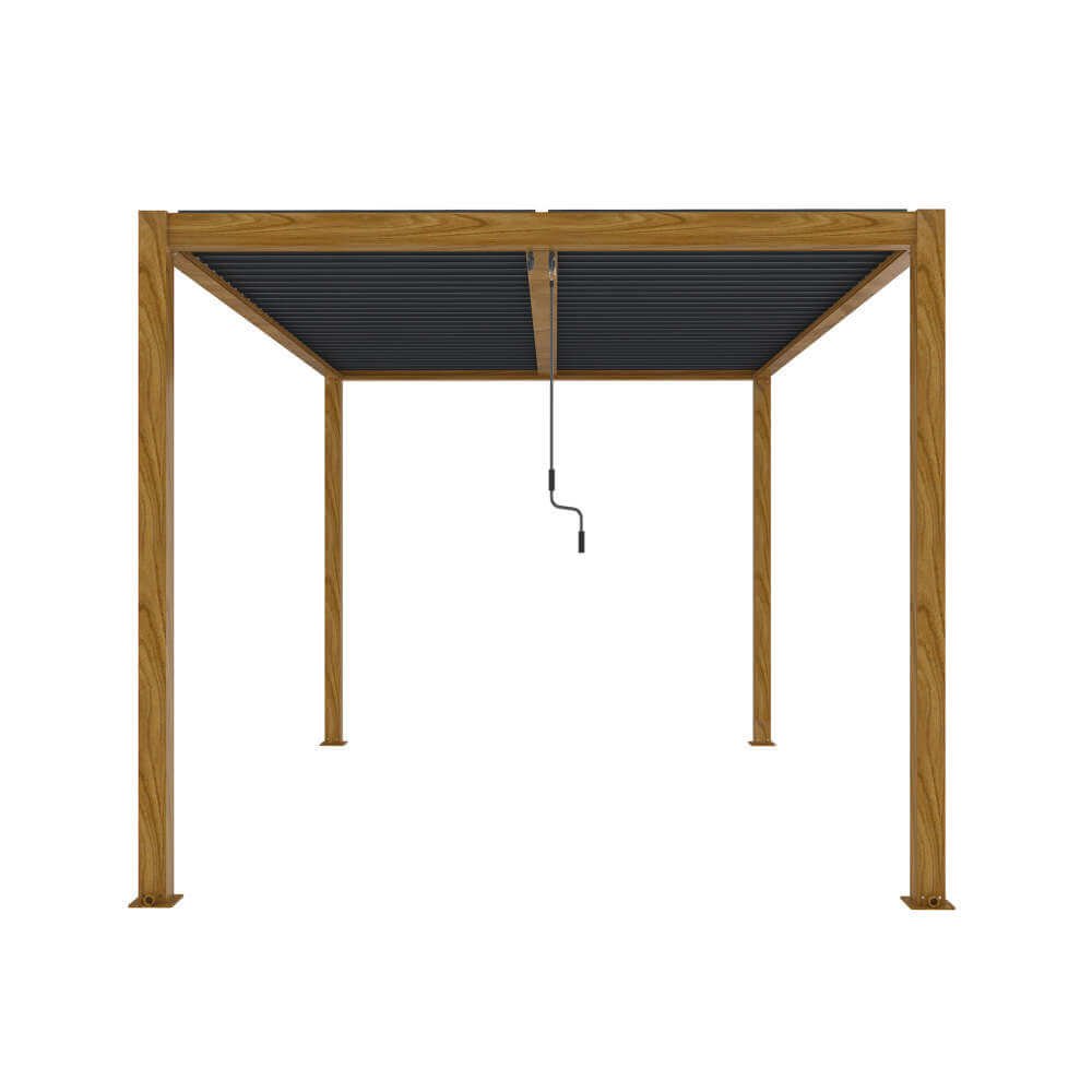 Il design della Pergola TONY presenta un tetto suddiviso in due sezioni, che permette di regolare manualmente l’ombra e la ventilazione per adattarsi alle tue esigenze. Le alette del tetto possono essere regolate con facilità, offrendo la possibilità di ottimizzare la luce e la protezione contro le intemperie.