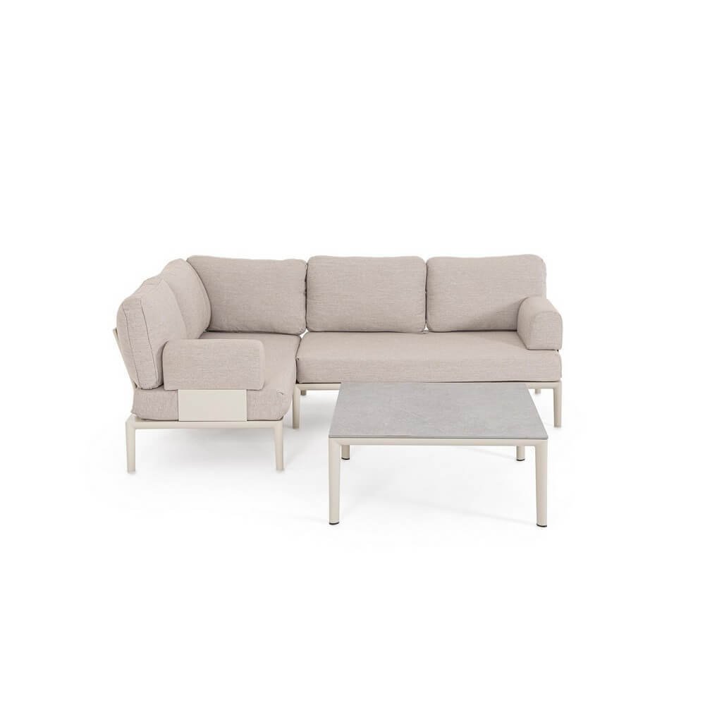 Struttura in alluminio verniciata a polvere (poliestere). bracciolo imbottito con rivestimento in tessuto idrorepellente olefin (100% polipropilene). viteria in acciaio inossidabile.
