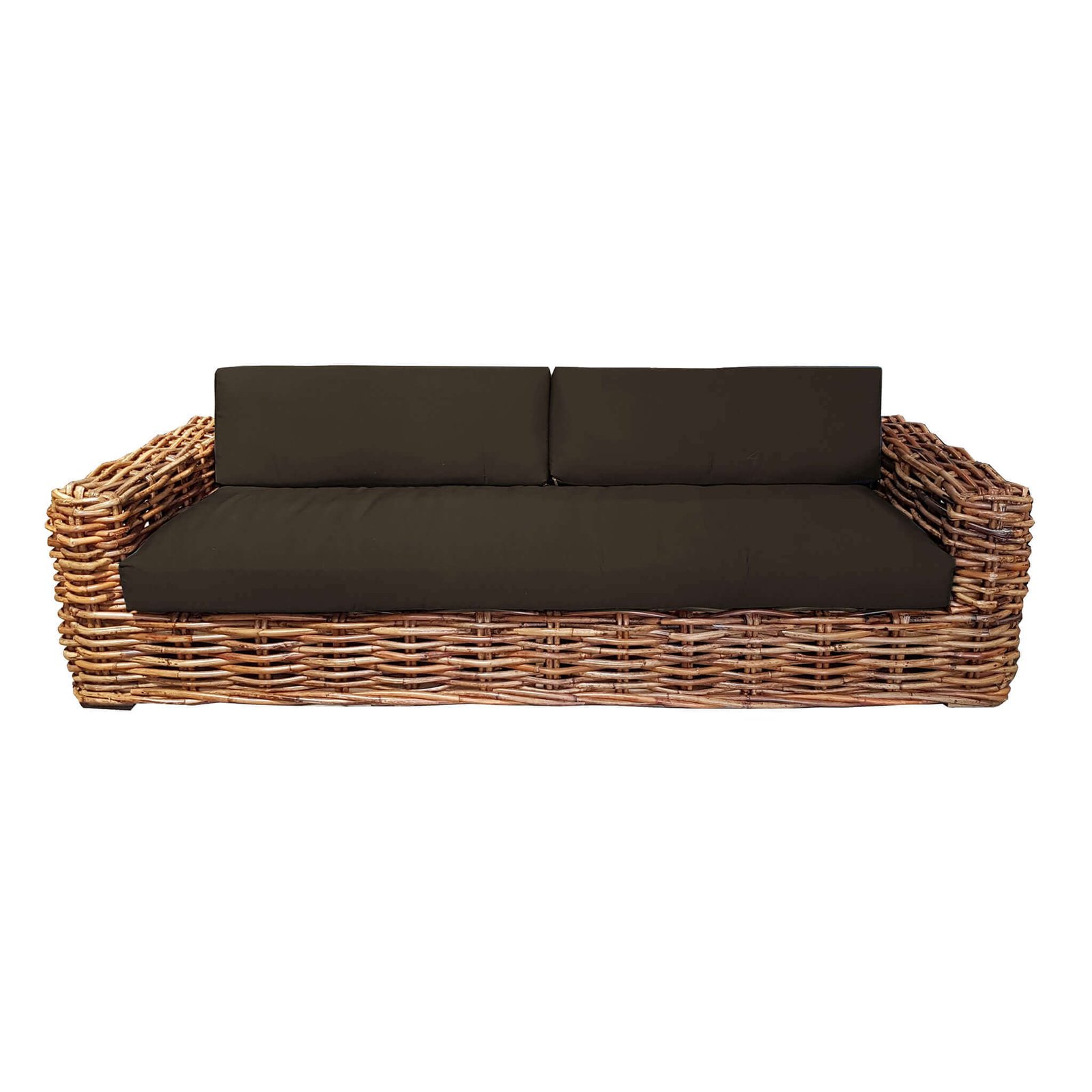 Il Divano da Giardino 3 posti in Rattan naturale – NATUR è la scelta ideale per chi desidera arredare l’esterno con stile ed eleganza, senza rinunciare al comfort. La struttura solida in legno è interamente rivestita da intrecci di big rattan naturale, un materiale pregiato e resistente, che conferisce al prodotto un fascino autentico e artigianale. Il colore marrone caldo dei materiali si fonde armoniosamente con i cuscini dalle tonalità scure per un contrasto raffinato, rendendolo perfetto per ambienti outdoor come terrazze, patii, verande o giardini. Il design ampio e avvolgente invita al relax condiviso, garantendo comodità fino a tre persone. Il divano NATUR si distingue per il suo stile naturale e contemporaneo, con linee morbide e una lavorazione visivamente ricca di dettagli che lo rendono un elemento d’arredo unico per salotti da giardino di gusto ricercato. Ideale per momenti di convivialità o pause rilassanti all’aria aperta, esprime il meglio di sé in un contesto soleggiato e armonioso, creando un’atmosfera accogliente e sofisticata.