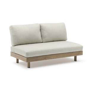 Il divano da giardino modulo centrale 2 posti ULRIC è la soluzione ideale per arredare con stile e funzionalità gli spazi outdoor, perfetto per l’ambiente raffinato di un hotel o per creare un angolo accogliente nel proprio salotto da giardino. La sua struttura in alluminio effetto legno con finitura raffinata unisce la leggerezza del metallo alla calda estetica del legno naturale, offrendo resistenza agli agenti atmosferici senza rinunciare all’eleganza. Il rivestimento in poliestere beige e la linea morbida dei cuscini, ampi e generosamente imbottiti, richiamano una sensazione di comfort avvolgente e contemporaneo, in linea con uno stile moderno e minimalista. La modularità del modello consente una grande versatilità nella composizione degli spazi, ideale per combinazioni su misura in aree lounge all’aperto. Con le sue dimensioni generose (150 cm di larghezza per 91 cm di profondità e 71 cm di altezza), il divano ULRIC accoglie due persone offrendo un’esperienza di relax elegante e disinvolta, da vivere nei momenti di convivialità o negli attimi di pausa immersi nella quiete del proprio giardino.