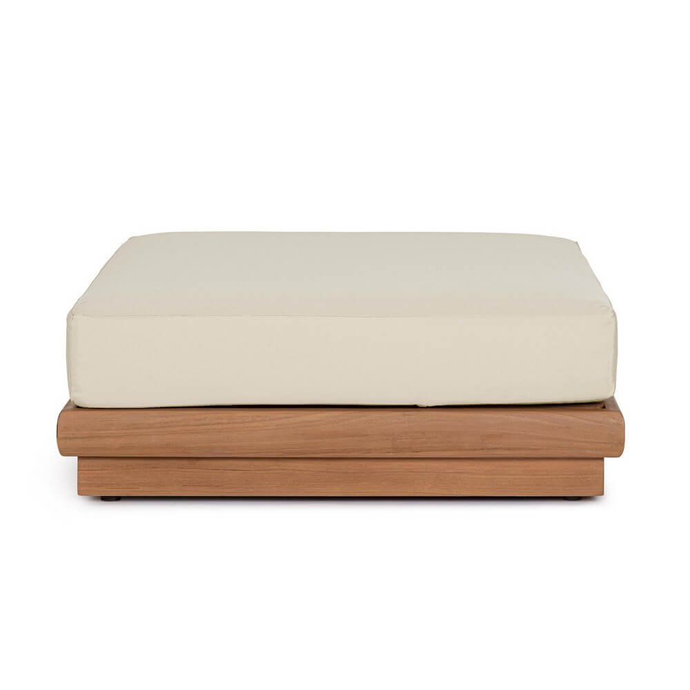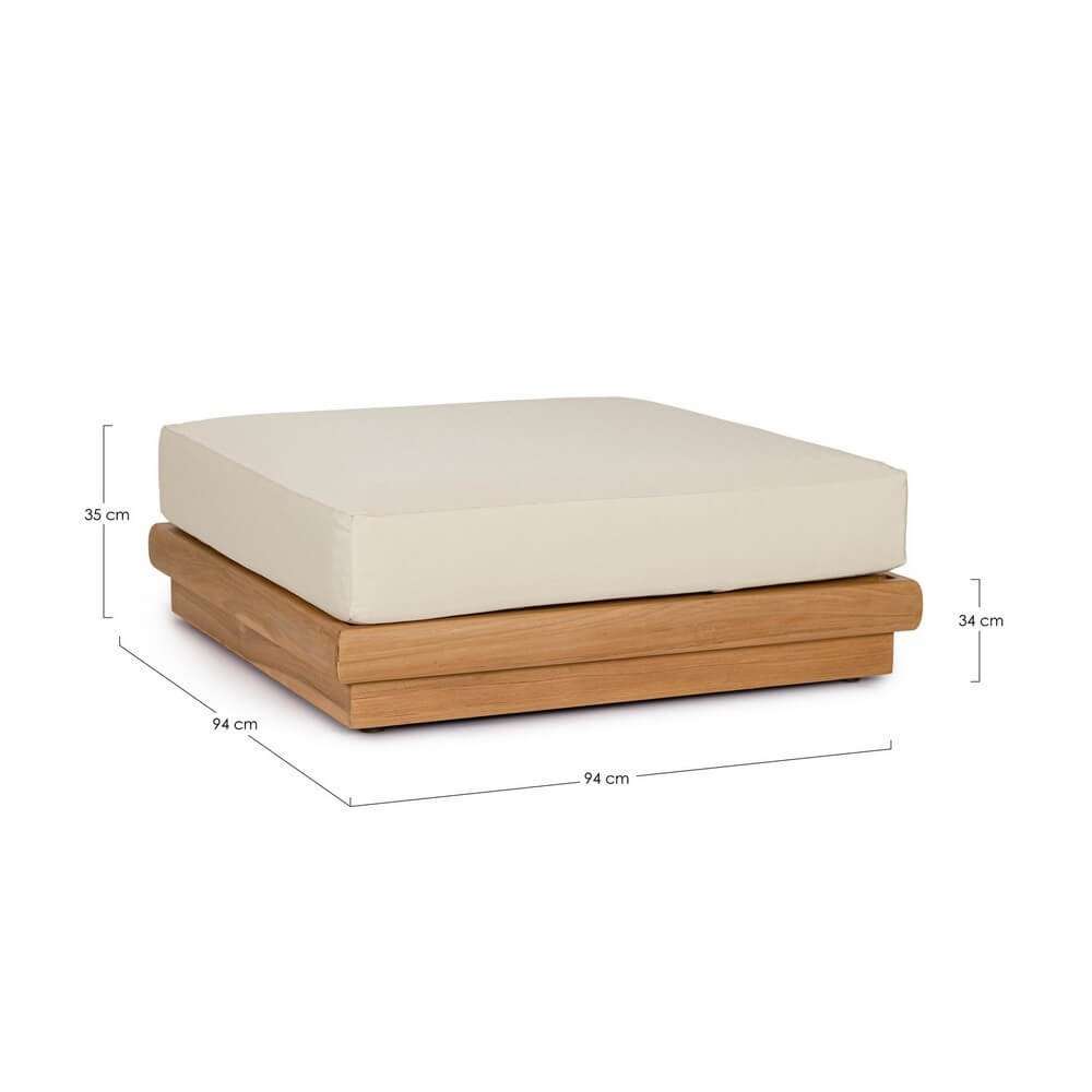 Il Poggiapiedi Teak Marrone Moderno da Esterno – SERELIS è la sintesi perfetta tra stile minimalista e funzionalità pensata per l’arredo giardino di alta gamma. Realizzato con una solida struttura in teak certificato SVLK proveniente da foreste sostenibili, questo complemento esprime un’eleganza naturale grazie al calore del legno marrone e alla bellezza sobria delle linee geometriche. Il cuscino in tessuto idrorepellente Sunproof Olefin, sfoderabile e resistente agli agenti atmosferici, dona un comfort raffinato e duraturo, ideale per momenti di relax all’aria aperta. Ogni dettaglio è pensato per offrire qualità e durata nel tempo: il teak, pregiato per l’alto contenuto di oli naturali, si distingue per resistenza e fascino estetico, pur richiedendo attenzione nell’uso diretto con i cuscini. Il design basso e moderno si adatta armoniosamente a qualsiasi salotto da giardino contemporaneo, valorizzando spazi outdoor come terrazze, verande o bordi piscina. Il Poggiapiedi SERELIS esprime al meglio il suo valore quando inserito in un ambiente rilassante e ben curato, diventando il dettaglio essenziale che completa con discreta eleganza ogni zona living esterna.