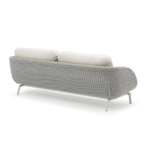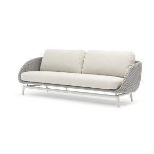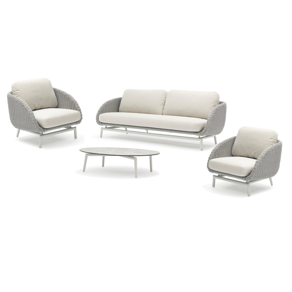 Il Salotto da giardino 5 posti – WYNN è la soluzione perfetta per chi desidera arredare spazi outdoor con stile moderno e materiali di alta qualità. Composto da un divano a tre posti, due poltrone e un elegante tavolino basso, questo salotto si distingue per il design contemporaneo dalle linee morbide e avvolgenti, con una struttura fissa in alluminio verniciato che assicura leggerezza, resistenza alle intemperie e durata nel tempo. I cuscini imbottiti in poliestere nei toni neutri del beige si abbinano armoniosamente all’intreccio grigio delle sedute, creando un raffinato contrasto cromatico dallo stile sobrio ed elegante. Il tavolino, con piano effetto marmo, aggiunge un tocco di classe all’insieme, completando con discrezione e funzionalità questo arredo da giardino. Pensato per ambientazioni come terrazze di hotel, verande o aree lounge all’aperto, il Salotto da giardino WYNN offre il perfetto equilibrio tra comfort accogliente e design contemporaneo. Ideale per momenti di relax o accoglienza, questo set valorizza ogni spazio esterno con stile e funzionalità.