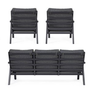 Il Salotto da Giardino Alluminio Antracite Moderno – PRESIDENTIAL è la scelta ideale per chi desidera arredare gli spazi esterni con eleganza e funzionalità. Caratterizzato da un design moderno e pulito, questo set da giardino si distingue per la struttura in alluminio verniciata a polvere di colore antracite, resistente agli agenti atmosferici e facile da mantenere. I cuscini, generosamente imbottiti, sono rivestiti in tessuto olefin 100% polipropilene, completamente sfoderabili, offrendo comfort e praticità. Le linee decise e la finitura opaca donano un’estetica sofisticata che si adatta perfettamente a terrazze, patii o giardini contemporanei. I dettagli come la viteria in acciaio inox e la qualità delle lavorazioni confermano la solidità costruttiva e la durabilità nel tempo. Il Salotto da Giardino PRESIDENTIAL include una seduta a tre posti e due poltrone singole, pensati per offrire momenti di relax e convivialità all’aria aperta, in un ambiente raffinato e accogliente. Perfetto per vivere la tua zona outdoor come un vero angolo lounge, con stile e comfort.
