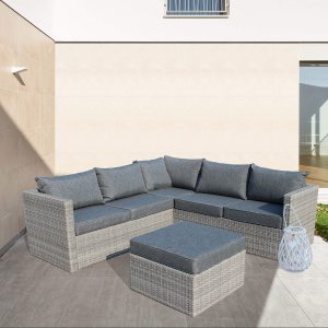 Elegante, moderno e progettato per offrire il massimo comfort all’esterno, il Salotto da Giardino con cuscini 4 posti in Alluminio Wicker – DWIGHT è la soluzione ideale per trasformare qualsiasi spazio outdoor in un angolo raffinato di relax. Questo salotto angolare da esterno unisce la robustezza di una struttura in alluminio alla bellezza naturale del wicker grigio, un materiale resistente ai raggi UV che mantiene la sua estetica inalterata nel tempo. Il design contemporaneo e pulito è valorizzato da cuscini imbottiti da 10 cm in tessuto coordinato, offrendo sedute accoglienti e uno stile sobrio perfettamente integrabile in giardini, terrazze e verande. Con una capienza fino a 6 posti, il salotto DWIGHT è pensato per condividere momenti di convivialità in totale benessere. Le dimensioni generose dei moduli, la qualità dei materiali e il tono neutro del grigio lo rendono un complemento d’arredo versatile e sofisticato. Che si tratti di un aperitivo al tramonto o di un pomeriggio in compagnia, questo salotto da giardino esprime tutta la sua eleganza nel creare uno spazio all’aperto accogliente e di classe.