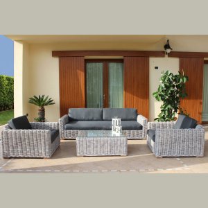 Salotto da Giardino con cuscini 4 posti in Rattan naturale – VES