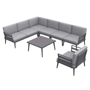 La **Seduta con cuscino per salotto da giardino componibile – DEX** rappresenta la perfetta sintesi tra raffinatezza contemporanea e funzionalità outdoor. Realizzata con una solida struttura in alluminio verniciato antracite, questa seduta conferisce un aspetto elegante e minimalista all’arredo da esterno, integrandosi armoniosamente sia in giardini moderni che in spazi outdoor più classici. Il dettaglio del tessuto grigio dei cuscini, visibile nell’immagine, rivela una texture morbida ma resistente, arricchita da una pratica zip a vista che ne testimonia la qualità artigianale e ne facilita la manutenzione. L’effetto visivo generale è di sobria raffinatezza, esaltata dalla finitura opaca della struttura e dal tono neutro del rivestimento, che conferisce una sensazione di comfort accogliente. Il design componibile della seduta DEX consente un’ampia versatilità di configurazione, ideale per creare salotti da giardino personalizzati e di grande impatto estetico. Questo elemento d’arredo trova la sua massima espressione in un ambiente esterno curato, dove relax e convivialità si fondono in uno stile senza tempo.