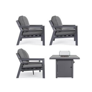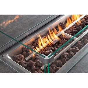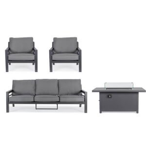 Il Salotto Alluminio Antracite Moderno da Esterno – HENDRIX è la soluzione ideale per arredare con eleganza e funzionalità ogni spazio all’aperto, trasformando giardini, terrazze o verande in luoghi esclusivi di relax e convivialità. Il design moderno dalle linee essenziali si fonde con la robustezza dell’alluminio verniciato a polvere, finitura antracite, che garantisce leggerezza, durabilità e resistenza agli agenti atmosferici. L’elemento distintivo è il tavolo centrale con piano in vetro serigrafato effetto ceramica e suggestivo camino a gas integrato, completo di paravento in vetro, roccia lavica e bruciatore in acciaio inox: un cuore caldo e scenografico per serate indimenticabili all’aperto. I cuscini in tessuto idrorepellente 100% poliestere, sfoderabili e confortevoli, esaltano ulteriormente la qualità e la praticità di questo arredo da giardino moderno. Il set HENDRIX include anche una copertura protettiva per il tavolo, resistente ai raggi UV, per una protezione ottimale nel tempo. Con il salotto HENDRIX vivere l’outdoor diventa un’esperienza avvolgente, dove il design incontra la funzionalità e ogni dettaglio contribuisce a creare un’atmosfera raffinata e accogliente.