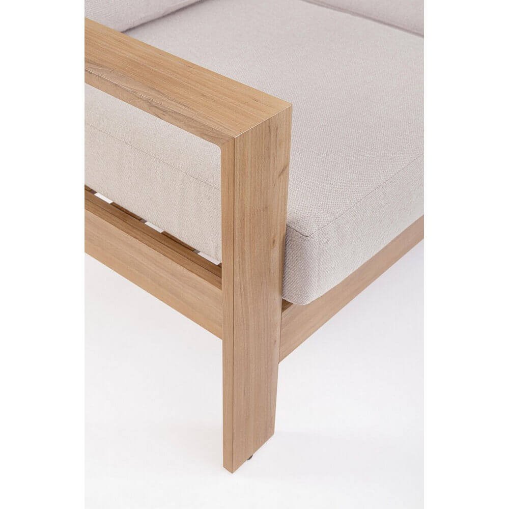 I cuscini sfoderabili di seduta e schienale sono realizzati in tessuto Olefin idrorepellente (100% polipropilene), perfetti per l’esterno e facili da pulire, per una seduta sempre asciutta e accogliente.