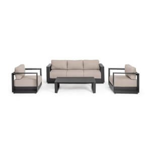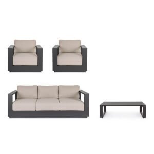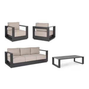Vivi i tuoi spazi all’aperto con un tocco di classe grazie a Moses, il set salotto da giardino a 4 posti in alluminio verniciato a polvere, progettato per unire design elegante, resistenza e comfort assoluto.