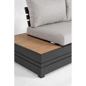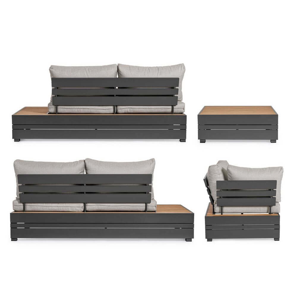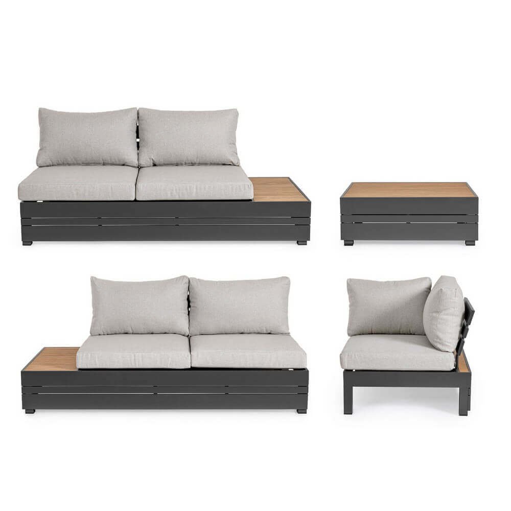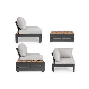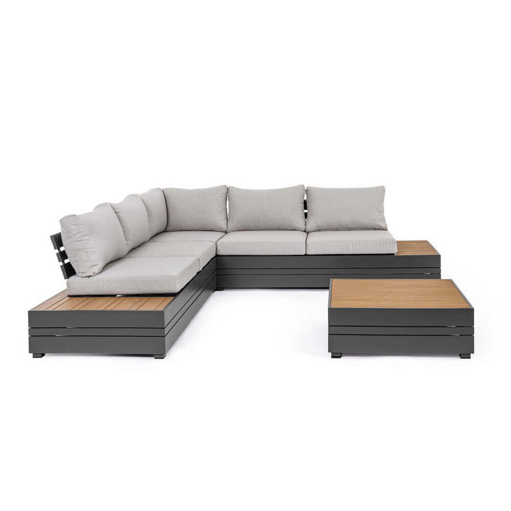 Il Salotto Angolare Alluminio Antracite Moderno da Esterno – OSTEN rappresenta l’equilibrio perfetto tra eleganza contemporanea, qualità dei materiali e funzionalità per spazi open-air. Realizzato con una solida struttura in alluminio verniciato a polvere color antracite, questo salotto da giardino si distingue per il suo design moderno e lineare, arricchito da raffinati inserti in polywood effetto teak sui laterali e sul tavolino centrale. I cuscini sfoderabili in tessuto di poliestere, nelle tonalità del grigio chiaro, offrono un contrasto estetico sobrio ma accattivante, garantendo al tempo stesso il massimo comfort anche per lunghi momenti di relax. Ideale per terrazze, verande o giardini, OSTEN unisce leggerezza strutturale e resistenza agli agenti atmosferici, mantenendo intatta la sua bellezza nel tempo. Ogni dettaglio, dal fissaggio con viteria in acciaio galvanizzato alla praticità dei materiali compositi, è studiato per offrire durata e versatilità negli ambienti esterni. Con il Salotto Angolare OSTEN, l’arredo da giardino si trasforma in un’esperienza di stile e relax condiviso, perfetta per valorizzare ogni angolo outdoor con un tocco di modernità sofisticata.