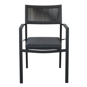 La Poltrona da giardino impilabile con cuscino – HESTIA rappresenta una perfetta combinazione di eleganza moderna, funzionalità e resistenza, ideale per l’arredo esterno di bar, pub o spazi residenziali raffinati. Realizzata con una solida struttura in alluminio verniciato color antracite, abbina leggerezza e durabilità, mentre lo schienale in corda tesa aggiunge un tocco contemporaneo e sofisticato. Il cuscino imbottito, rivestito in tessuto tono su tono e fissato con pratici lacci, garantisce il massimo comfort anche nelle sedute prolungate, valorizzando la piacevolezza dell’esperienza all’aria aperta. Il design con braccioli e linee essenziali conferisce a HESTIA uno stile pulito e versatile, in grado di integrarsi armoniosamente in contesti moderni e curati. Impilabile e salvaspazio, è una soluzione pratica per chi desidera ottimizzare gli ambienti senza rinunciare allo stile. Con dimensioni bilanciate (55,5 x 62,5 x 83,5 cm), questa poltrona da giardino è ideale per creare angoli relax accoglienti, dove comfort e design si incontrano. Perfetta per accompagnare momenti di convivialità all’aperto, la poltrona HESTIA esprime il meglio di sé in ambienti eleganti e contemporanei.
