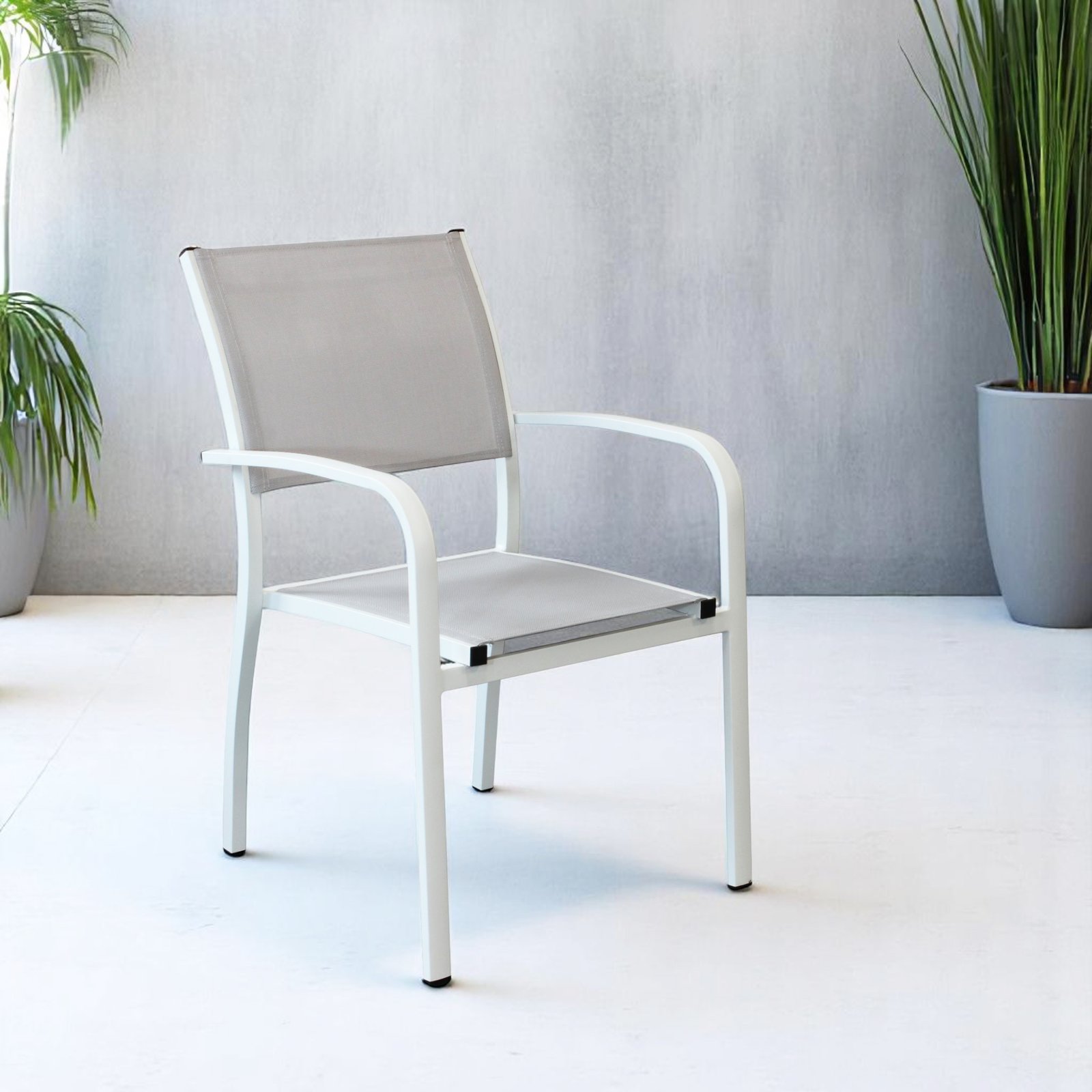 La Poltrona da Giardino Impilabile in Alluminio Textilene – MARIUS è la soluzione perfetta per valorizzare qualsiasi ambiente outdoor con eleganza e funzionalità. Caratterizzata da un design moderno e lineare, questa poltrona unisce stile contemporaneo e praticità grazie alla struttura in alluminio verniciato in raffinata finitura antracite e alla seduta in resistente textilene 2×1, materiale perfetto per l’uso esterno grazie alla sua traspirabilità, comfort e facilità di manutenzione. Le linee sobrie e leggere, abbinate alla possibilità di impilaggio, la rendono ideale per ottimizzare gli spazi in giardini, terrazze, verande o zone relax a bordo piscina. La Poltrona MARIUS offre un’eccellente stabilità e un comfort naturale grazie allo schienale leggermente inclinato e ai braccioli integrati. Perfetta per accompagnare tavoli da pranzo outdoor o come seduta aggiuntiva in composizioni lounge, esprime al meglio il suo valore in contesti moderni, minimalisti o outdoor dal gusto contemporaneo.