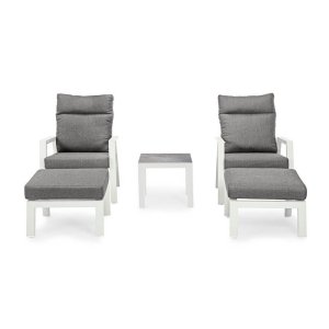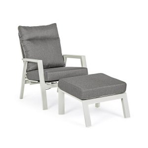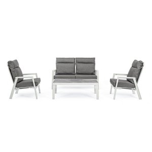 struttura in alluminio verniciata a polvere (poliestere). schienale reclinabile in libera posizione e seduta in textilene 1×1. cuscini sfoderabili con tessuto olefin (100% polipropilene). viteria in acciaio inossidabile.