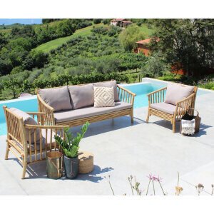 La Poltrona da giardino in bamboo – ONIX è l’emblema di un’eleganza naturale che fonde stile esotico e comfort contemporaneo. Realizzata in autentico bambù, questa seduta da esterno si distingue per la sua struttura robusta e sostenibile, capace di donare un tocco caldo e accogliente agli spazi outdoor. I morbidi cuscini grigi in poliestere, perfettamente sagomati, offrono un comfort avvolgente, invitando al relax in giardino, in veranda o su un terrazzo arredato con gusto. Le tonalità neutre del marrone del bambù e del grigio del rivestimento creano un perfetto equilibrio visivo, valorizzando ambienti naturali o arredamenti in stile boho chic, etnico o minimalista. Le dimensioni generose (78 x 67 x 35/80 cm h) la rendono ideale per garantire una seduta spaziosa e accogliente per una persona, valorizzando ogni angolo dell’arredo da giardino con un elemento raffinato e distintivo. La Poltrona ONIX esprime il meglio di sé in contesti en plein air dove la convivialità incontra la tranquillità, regalando un’esperienza di comfort autentico e uno stile senza tempo.