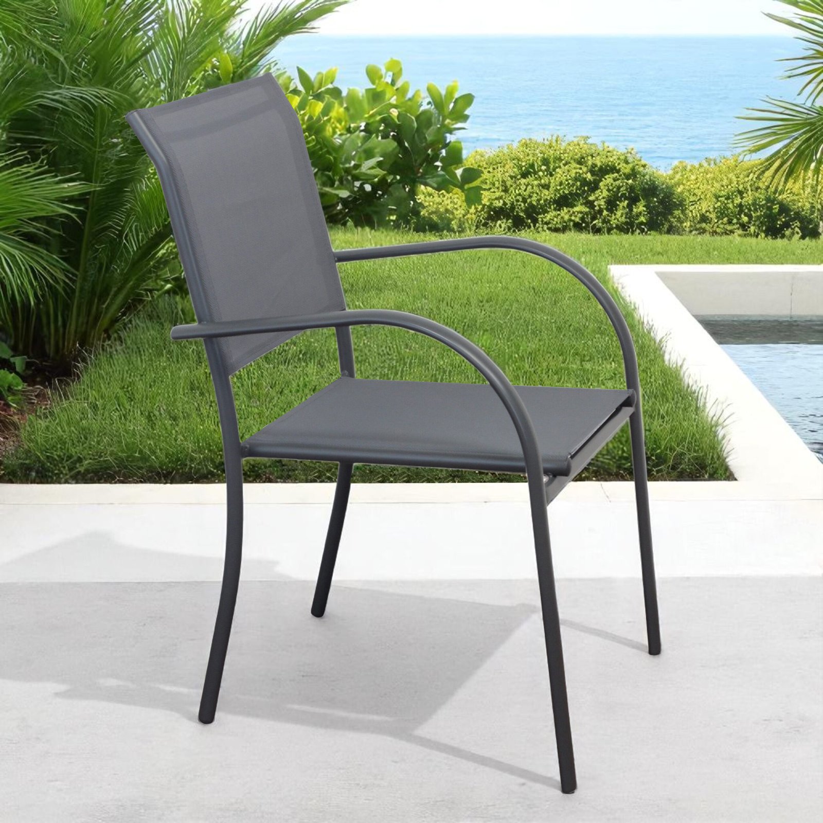 La poltrona impilabile da giardino YARA rappresenta la sintesi perfetta tra design contemporaneo e funzionalità pensata per gli spazi outdoor più esigenti. Caratterizzata da uno stile moderno ed essenziale, questa seduta da giardino con braccioli si distingue per la struttura solida in alluminio verniciato antracite, abbinata a una seduta e uno schienale in resistente textilene, materiali scelti per garantire comfort, traspirabilità e lunga durata in ambienti esterni. Le linee slanciate e leggere la rendono visivamente elegante, mentre la possibilità di impilare più elementi risponde alle necessità pratiche di ristoranti e locali outdoor, semplificando la gestione degli spazi. Le proporzioni ben studiate (56 cm di larghezza, 63 cm di profondità e 86 cm di altezza) assicurano un’ottima ergonomia e stabilità d’uso. La poltrona da giardino YARA si adatta con naturalezza a qualsiasi contesto di arredamento da esterno in stile moderno, offrendo una soluzione raffinata e funzionale per terrazze, verande, dehors o zone lounge. Pensata per durare, valorizza ogni momento all’aperto con stile e praticità.